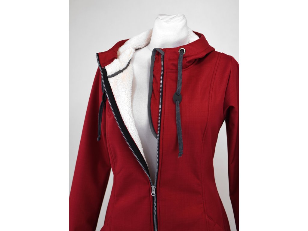 Softshellový kabát s beránkem - áčkový - červený