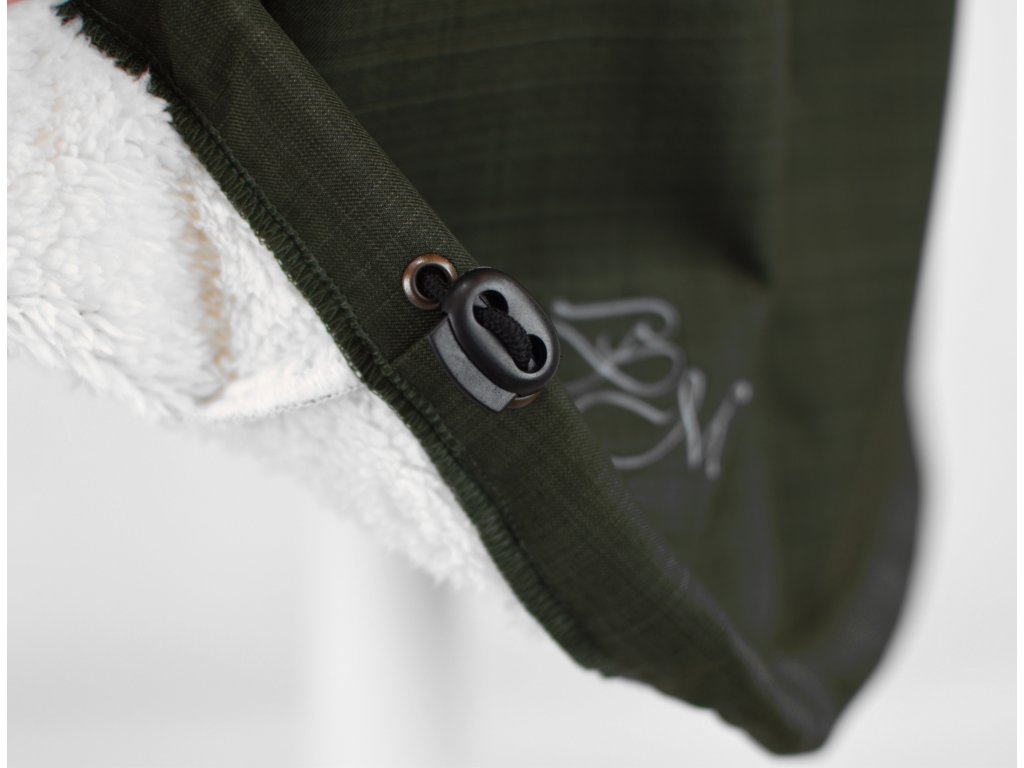 Neodmyslitelnou součástí je chránič brady u zipu. Rukávy jsou s delší švovou záložkou - dají se případně o trochu prodloužit, ale jsou dostatečně dlouhé pro většinu postav. Mají náplet všitý do kraje rukávu, aby dovnitř nefoukalo.
