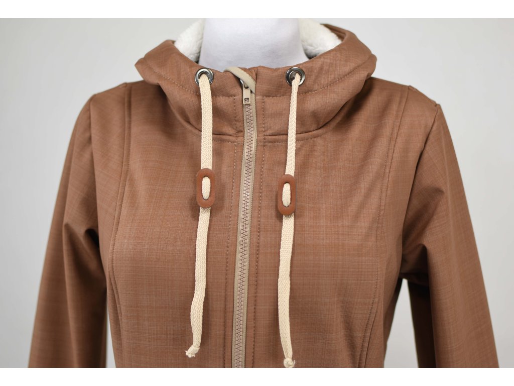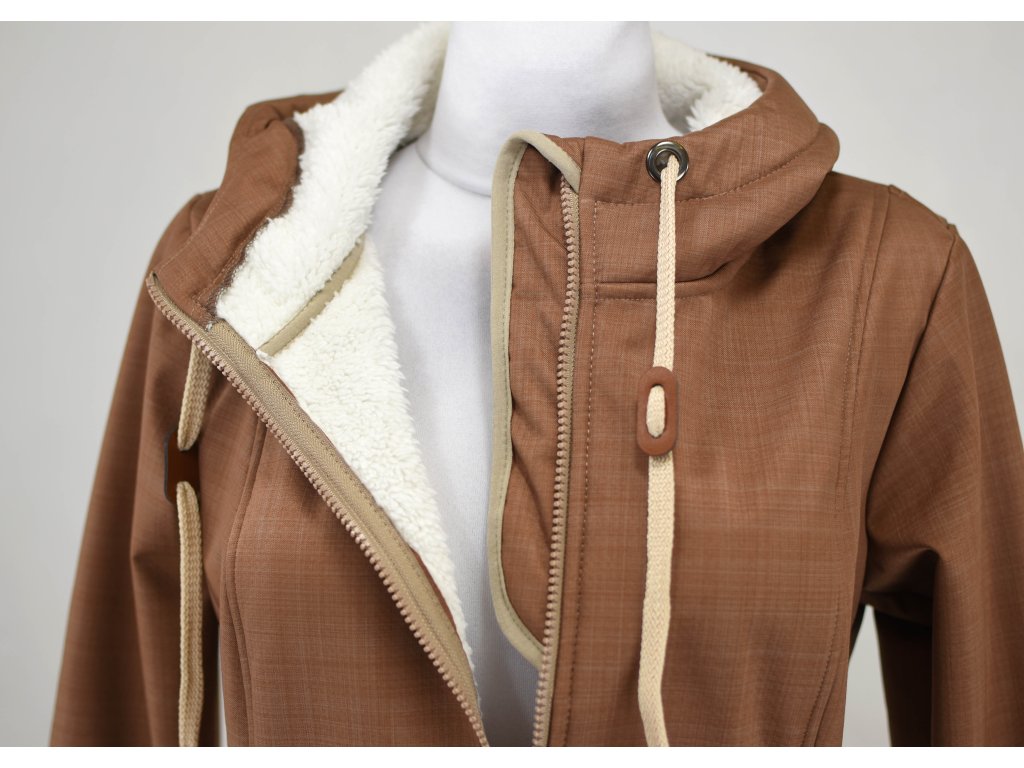 Softshellový kabát s beránkem - áčkový - oříškový