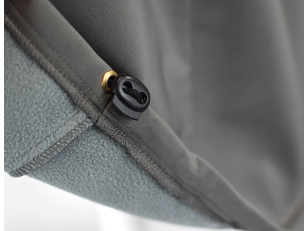 Neodmyslitelnou součástí je chránič brady u zipu. Rukávy jsou s delší švovou záložkou - dají se případně o trochu prodloužit, ale jsou dostatečně dlouhé pro většinu postav. Mají náplet všitý do kraje rukávu, aby dovnitř nefoukalo.