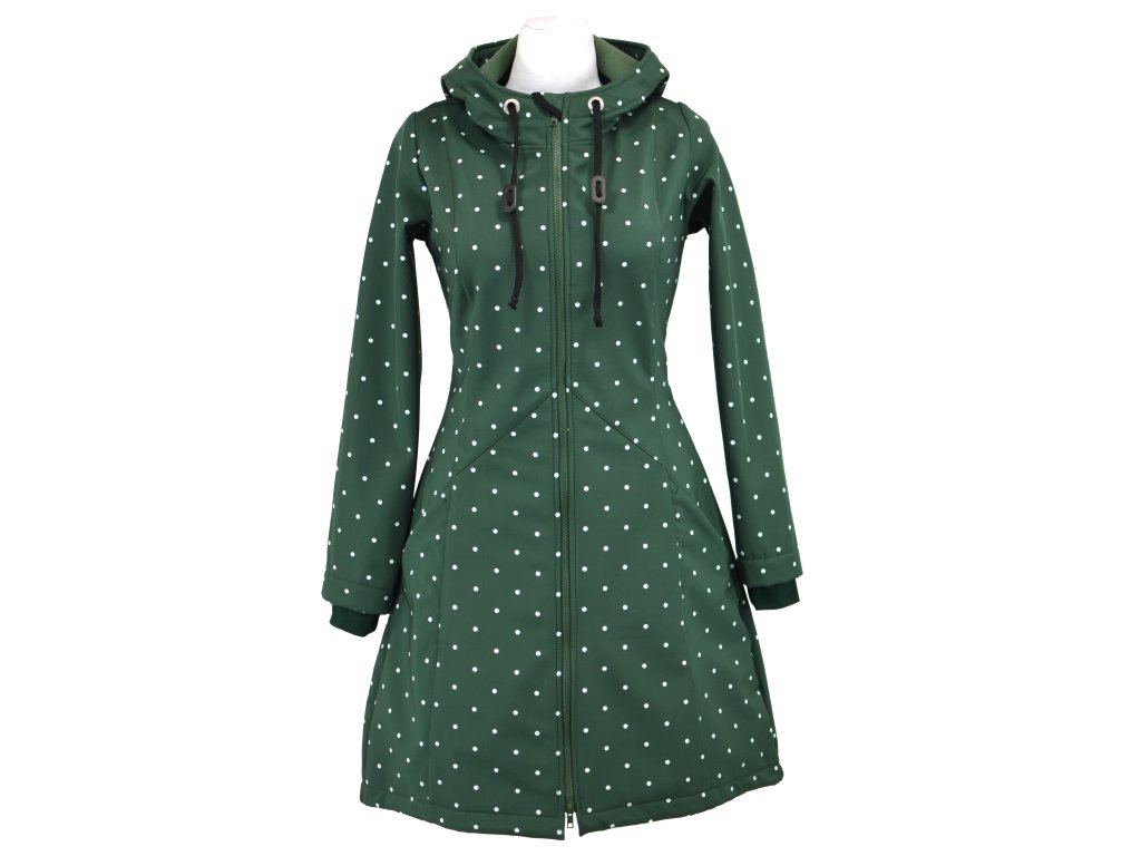 Softshellový kabát - áčkový - zelený s puntínky