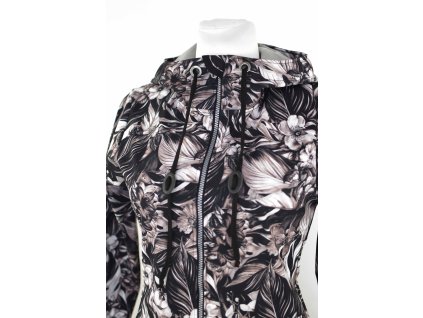 Dámský kabátek rovnějšího prodlouženého střihu s projmutým pasem, který hlavně tvaruje napevno všitá guma na zádech ve středu zadního dílu. Záda jsou nepatrně delší než přední část, spodek zadního dílu se lehce rozšiřuje a dolní lem je dokulata. Ve členícím švu v oblasti boků jsou dvě všité kapsy - kapsový váček a kapsový průhmat je částečně ze softshellu a částečně z bavlněného úpletu, největší kapsy, co jsme doposud u kabátků měli... :)