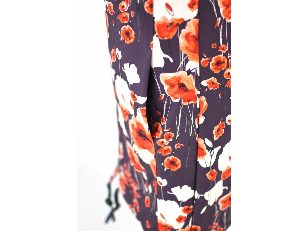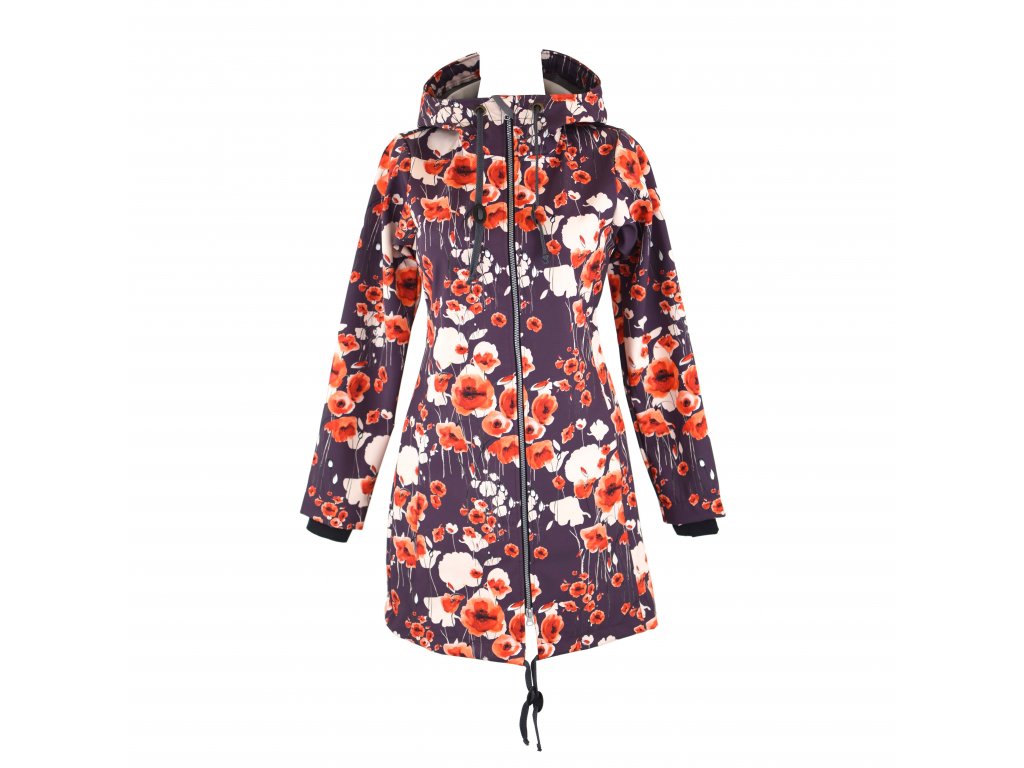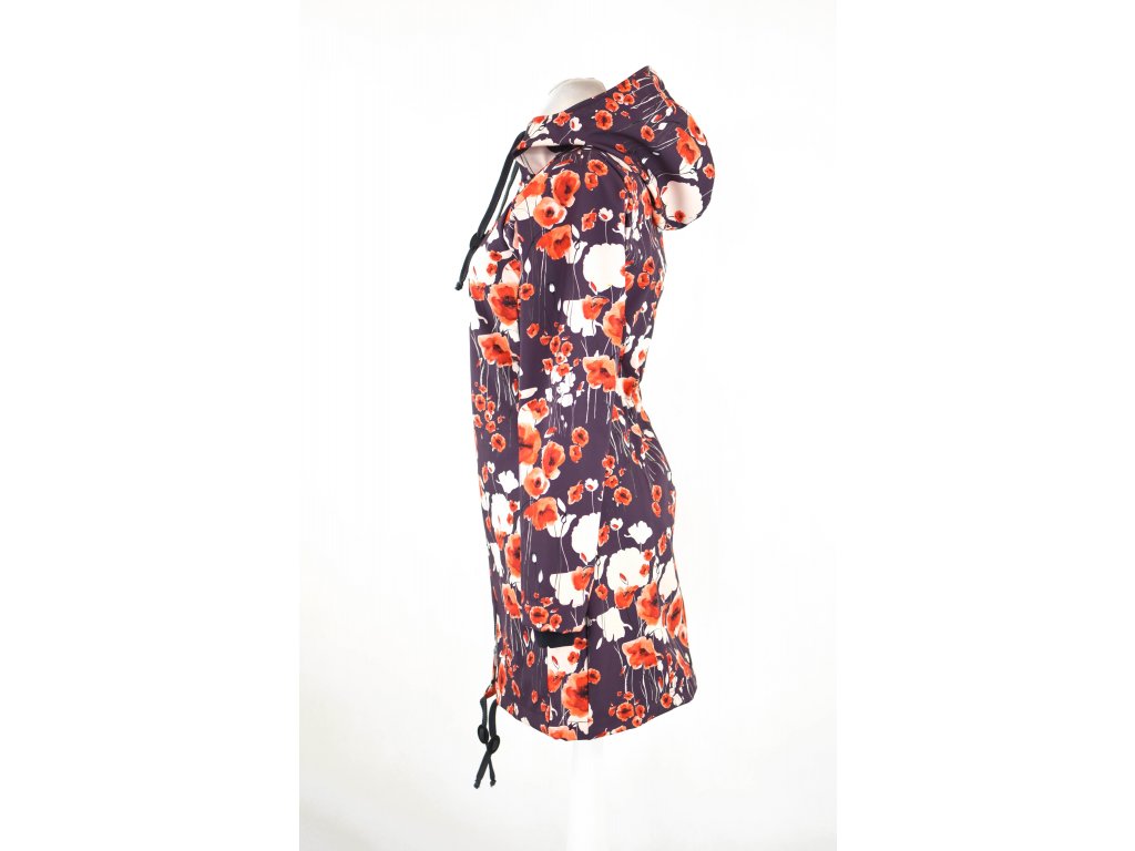 Dámský kabátek rovnějšího prodlouženého střihu s projmutým pasem, který hlavně tvaruje napevno všitá guma na zádech ve středu zadního dílu. Záda jsou nepatrně delší než přední část, spodek zadního dílu se lehce rozšiřuje a dolní lem je dokulata. Ve členícím švu v oblasti boků jsou dvě všité kapsy - kapsový váček a kapsový průhmat je částečně ze softshellu a částečně z bavlněného úpletu, největší kapsy, co jsme doposud u kabátků měli... :)