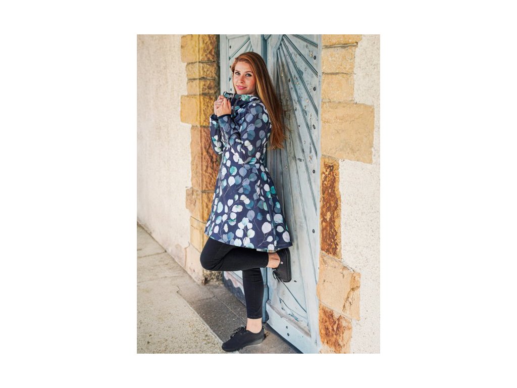 Dámský kabátek s půlkolovou sukní. Střih je projmutý do pasu, zadní díl je stažený do pevně všité gumy. Zádní délka je delší než přední část, spodek zadního dílu se lehce rozšiřuje a dolní lem je dokulata, na zadním díle je vyšité logo. V bočním švu jsou dvě kapsy - kapsový váček a kapsový průhmat je částečně ze softshellu a částečně z bavlněného úpletu (nebo plátna).