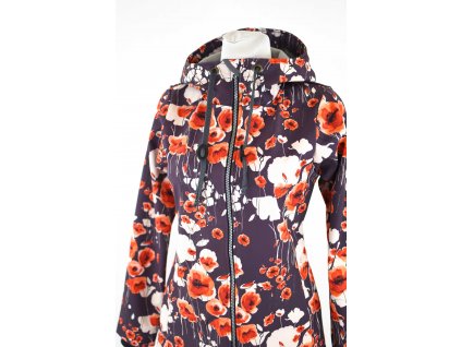 Dámský kabátek rovnějšího prodlouženého střihu s projmutým pasem, který hlavně tvaruje napevno všitá guma na zádech ve středu zadního dílu. Záda jsou nepatrně delší než přední část, spodek zadního dílu se lehce rozšiřuje a dolní lem je dokulata. Ve členícím švu v oblasti boků jsou dvě všité kapsy - kapsový váček a kapsový průhmat je částečně ze softshellu a částečně z bavlněného úpletu, největší kapsy, co jsme doposud u kabátků měli... :)