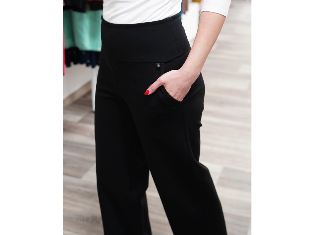 Dámské kalhoty do pasu ze středně silného materiálu. Mají dvě kapsy v bocích, širší rovné nohavice. Jsou velice pohodlné, elastické a přitom stále ležérní. Hodí se do outfitu jak k teniskám, tak lodičkám. Dají se dobře kombinovat s našimi saky.