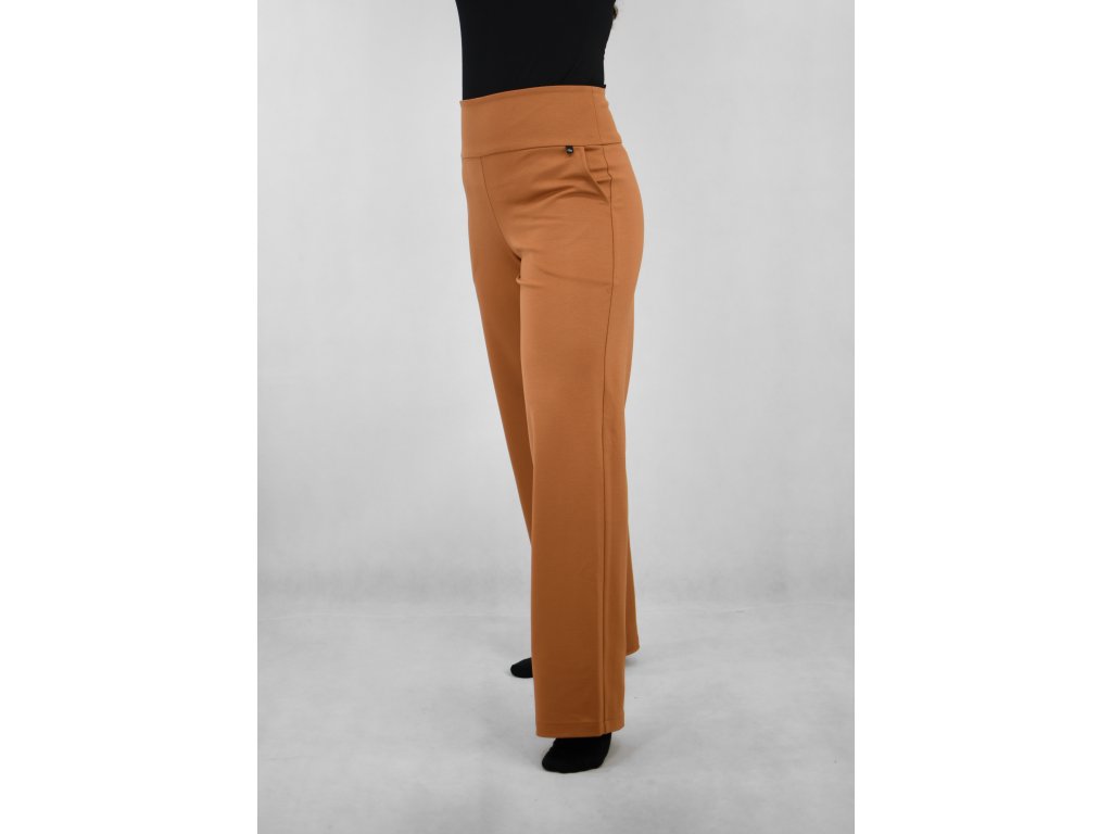Dámské kalhoty do pasu ze středně silného materiálu. Mají dvě kapsy v bocích, širší rovné nohavice. Jsou velice pohodlné, elastické a přitom stále ležérní. Hodí se do outfitu jak k teniskám, tak lodičkám. Dají se dobře kombinovat s našimi saky.