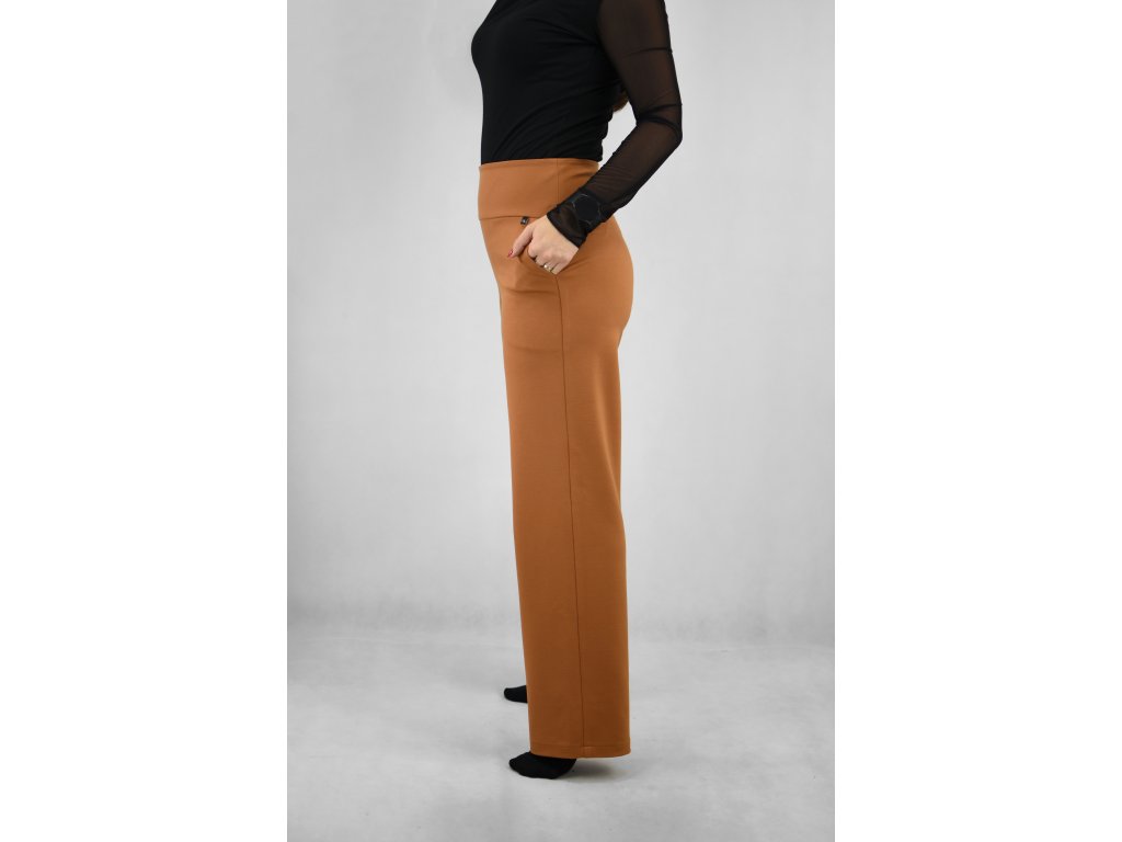 Dámské kalhoty do pasu ze středně silného materiálu. Mají dvě kapsy v bocích, širší rovné nohavice. Jsou velice pohodlné, elastické a přitom stále ležérní. Hodí se do outfitu jak k teniskám, tak lodičkám. Dají se dobře kombinovat s našimi saky.