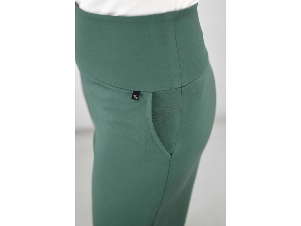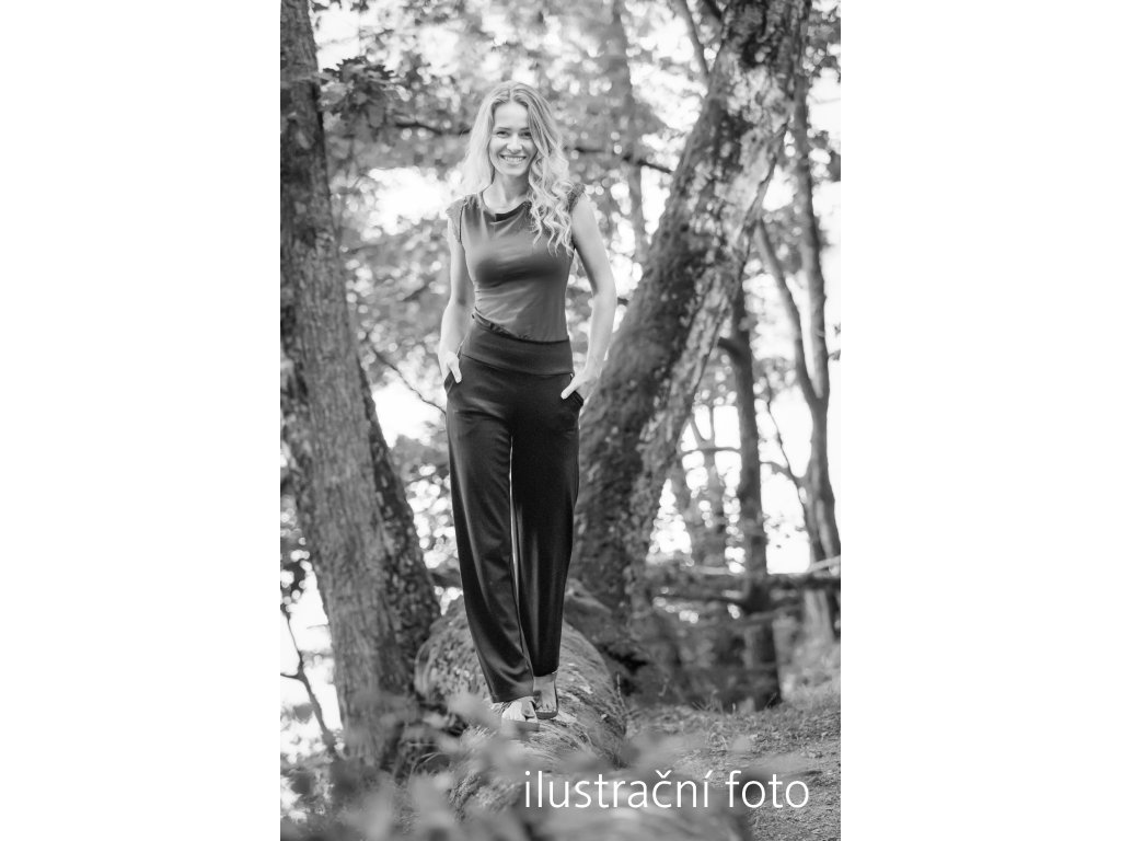 Dámské kalhoty do pasu. Mají dvě kapsy v bocích, širší rovné nohavice. Jsou velice pohodlné, elastické a přitom stále ležérní. Hodí se do outfitu jak k teniskám, tak lodičkám. Dají se dobře kombinovat s našimi saky.