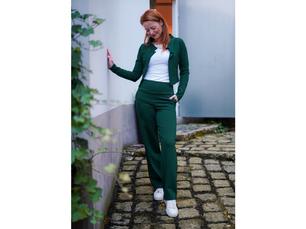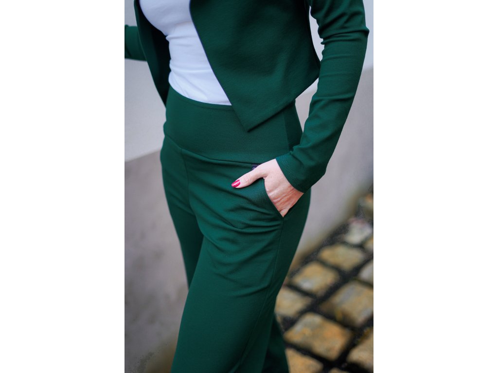Dámské kalhoty do pasu ze středně silného materiálu. Mají dvě kapsy v bocích, širší rovné nohavice. Jsou velice pohodlné, elastické a přitom stále ležérní. Hodí se do outfitu jak k teniskám, tak lodičkám. Dají se dobře kombinovat s našimi saky.