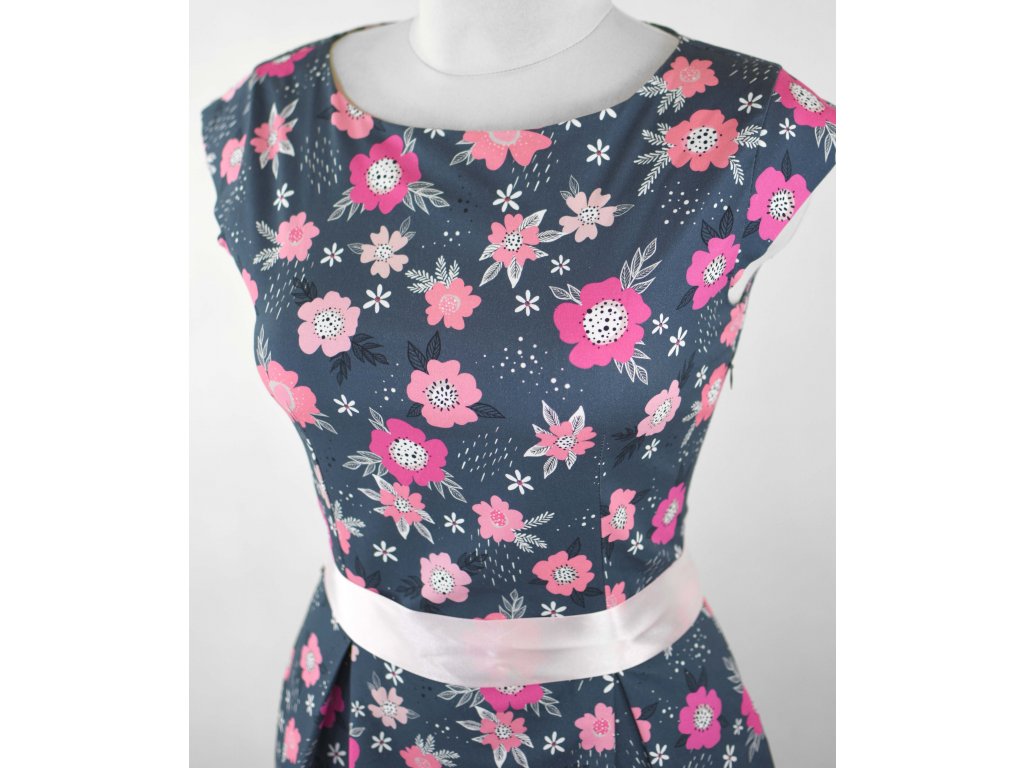 Dámské klasické šaty s krátkým rukávkem. Ten je tvarován tak, aby průramky neškrtily a při zvednutí rukou šaty netáhly a byla možnost volného pohybu. Jsou tvarované záševky a středem zadního dílu. Průkrčník je začištěn podsádkou, na boku skrytý zip a skryté kapsy. Nemají příliš hluboký výstřih, pas je trochu zvýšený, sukně je rovná, lehce do "A"... :)