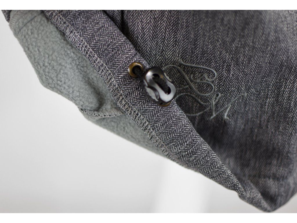 Kapuce je taktéž větší a praktičtější, dá se stáhnout šňůrkami, které jsou zakončeny koženkou. V dolním okraji se dá stáhnout gumičkou na obou stranách. Rukávy jsou s delší švovou záložkou - dají se případně o trochu prodloužit, ale jsou dostatečně dlouhé pro většinu postav. Je možné je naopak i ohrnout, když jsou moc dlouhé. Mají náplet všitý do kraje rukávu, aby dovnitř nefoukalo.
