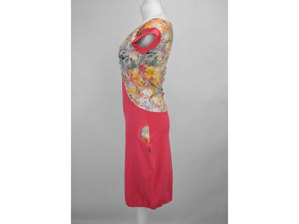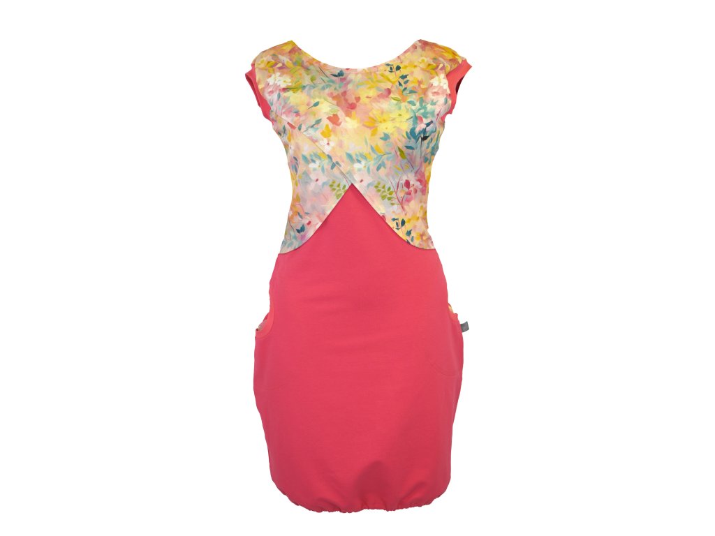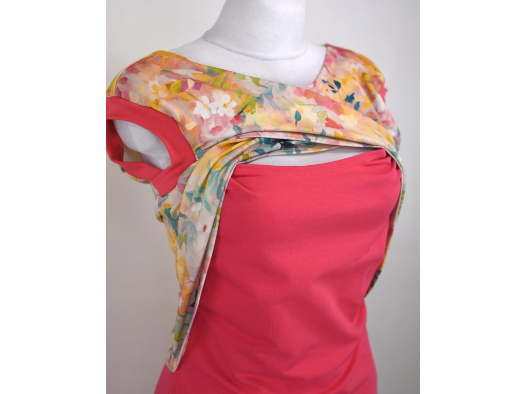 Dámská šatovka projmutá do pasu a volnějšími boky. Oproti klasické šatovce má ještě trochu volnější bříško. Má přinechané rukávky lemované úpletem s dostatečným prostorem na vrstvení, dole je stažená do gumičky (otvorem si ji můžete vyndat nebo povolit/utáhnout). Přes hrudník má překřížené dva díly, které navazují na zadní část. Dají se odhrnout a tím je šatovka vhodná i pro kojení. : ) Jinak vrchní část působí jako bolerko.