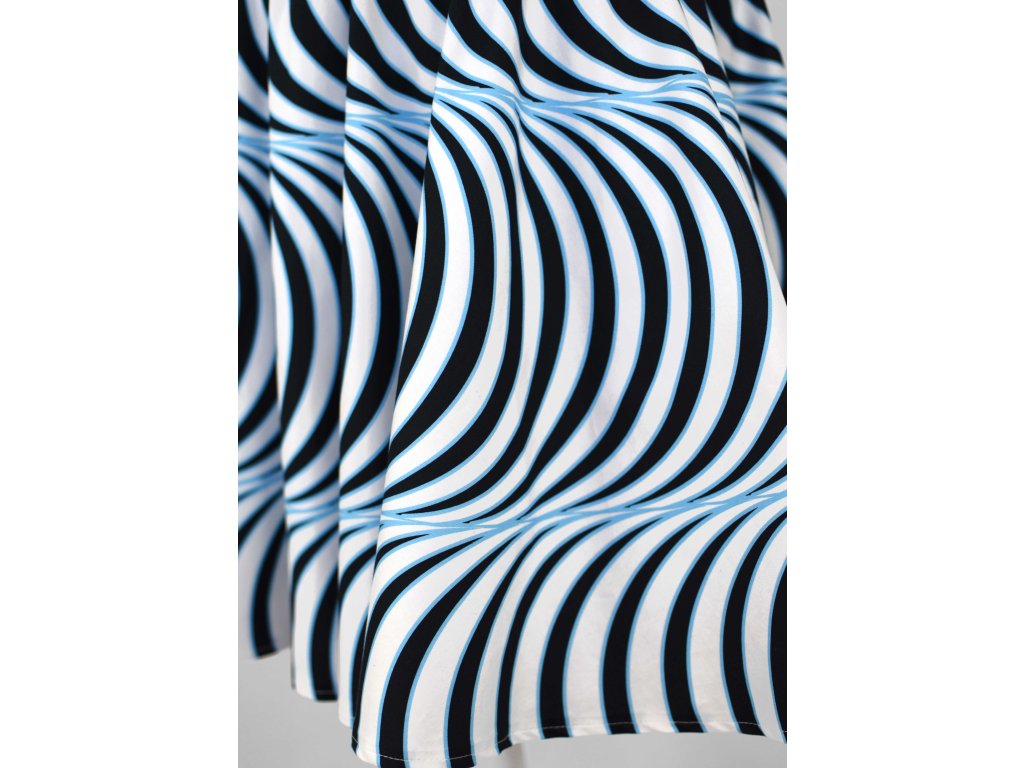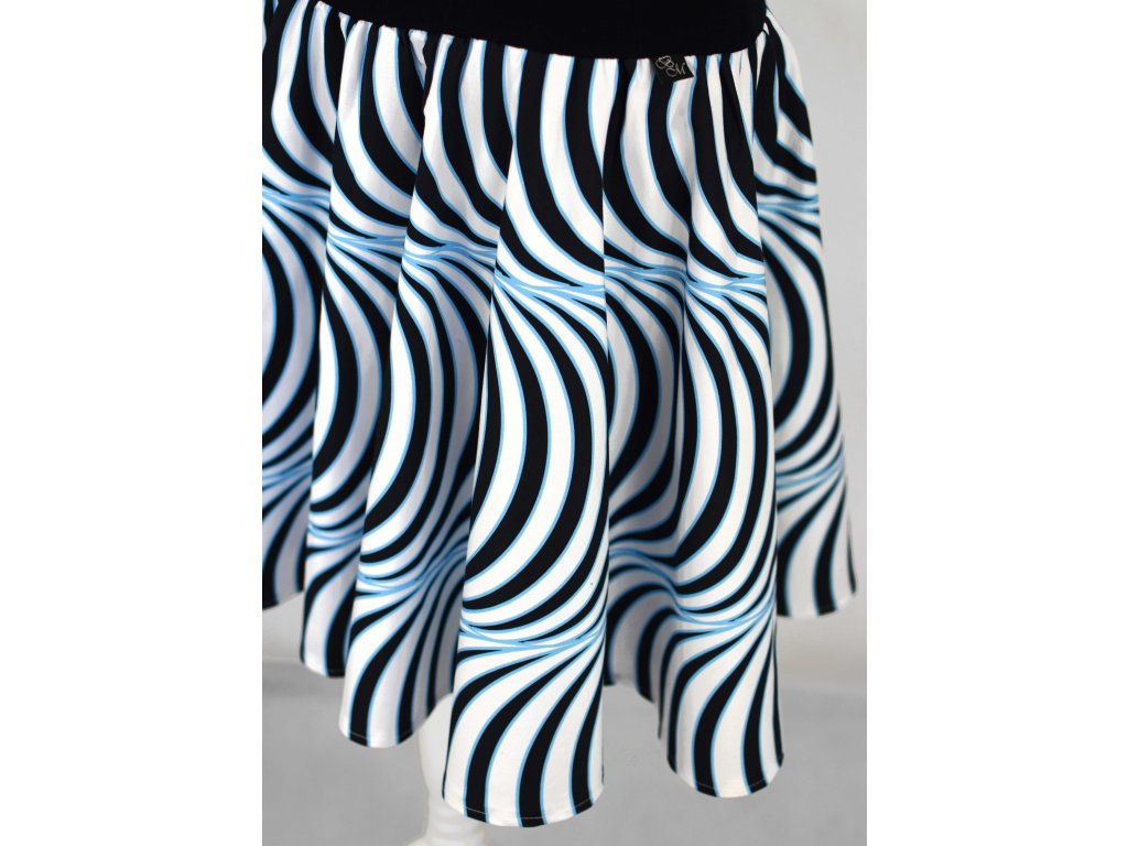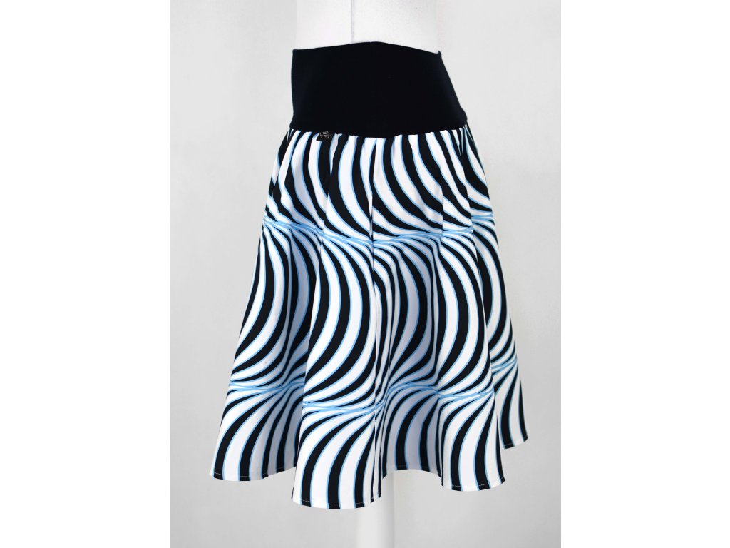 Dámská sukně s elastickým nápletem do pasu, kolového střihu se skrytými kapsami v bocích a podšívkou. Z rubu elastického pasu je nechán otvor na případné vložení gumy na zpevnění či stažení pasu (vhodné pro velikost XS). Látka je příjemná, hebká, nemačkavá, splývavá, lehká a pružná. Na pravé straně jedna skrytá kapsa. Sukně je hodně bohatá, objemná a krásně se točí… :)