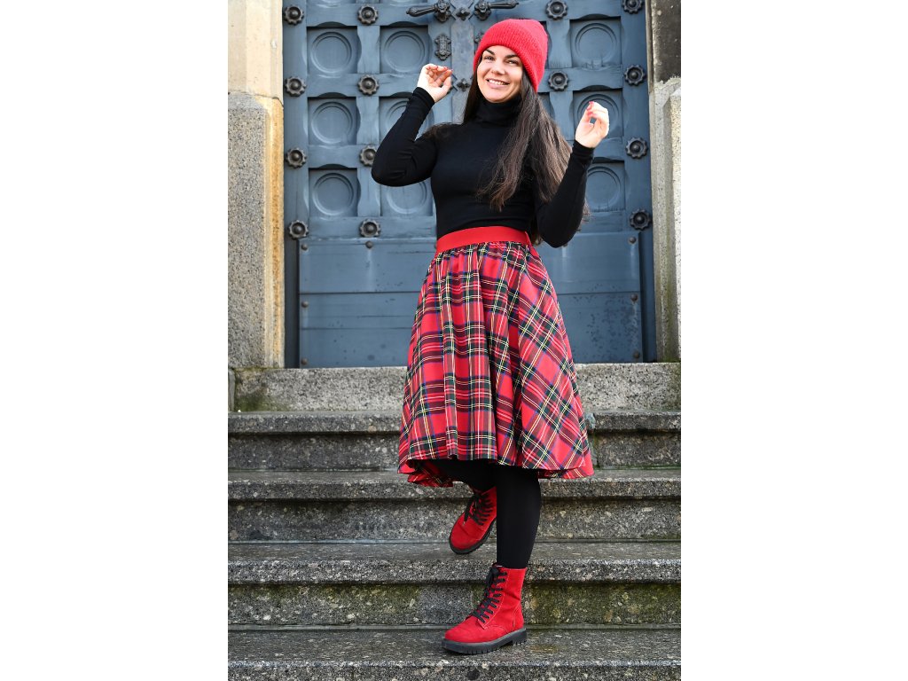 Kolová sukně - guma - červená kostka