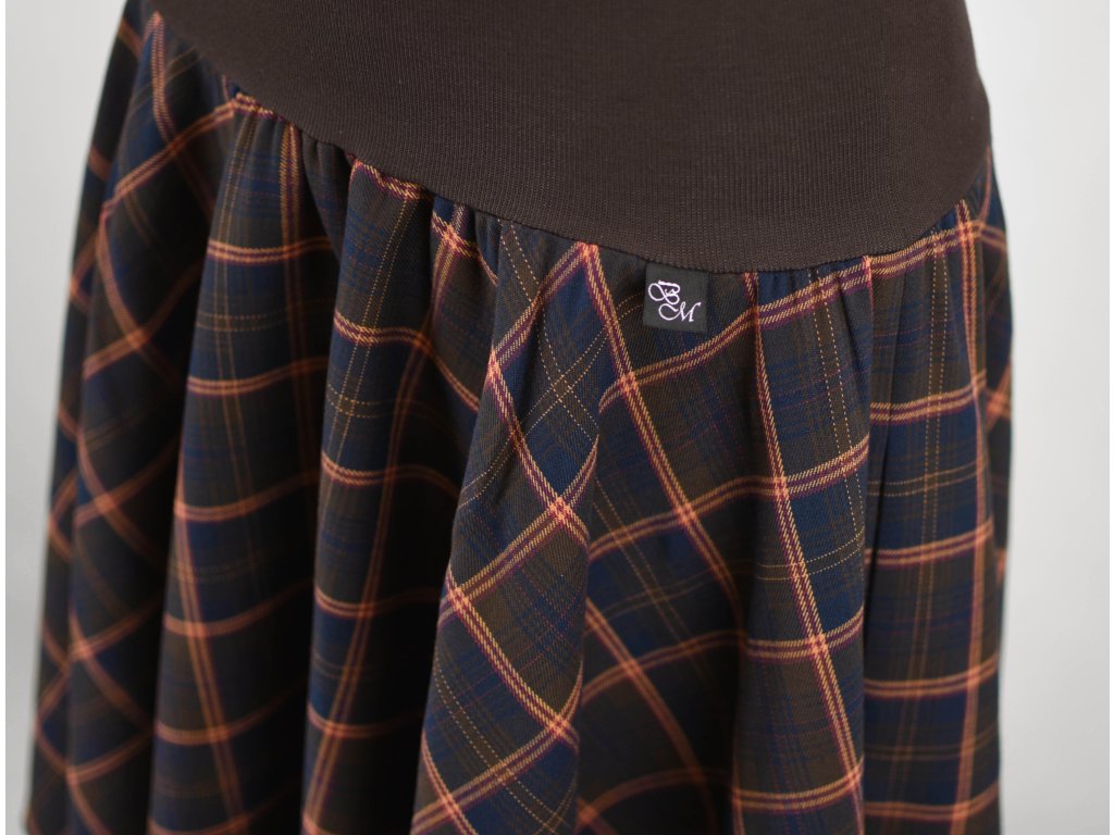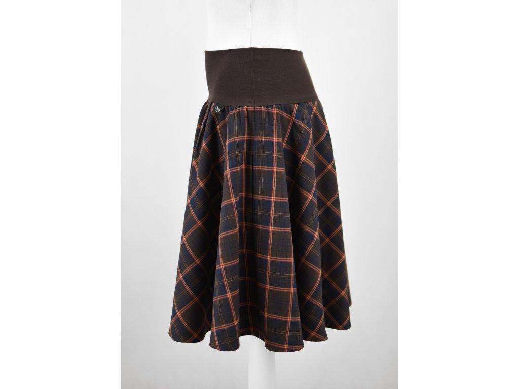 Dámská sukně s elastickým nápletem, kolového střihu se skrytými kapsami v bocích a podšívkou. Z rubu elastického pasu je nechán otvor na případné vložení gumy na zpevnění či stažení pasu (vhodné pro velikost XS). Sukně je hodně bohatá, objemná a krásně se točí… :)