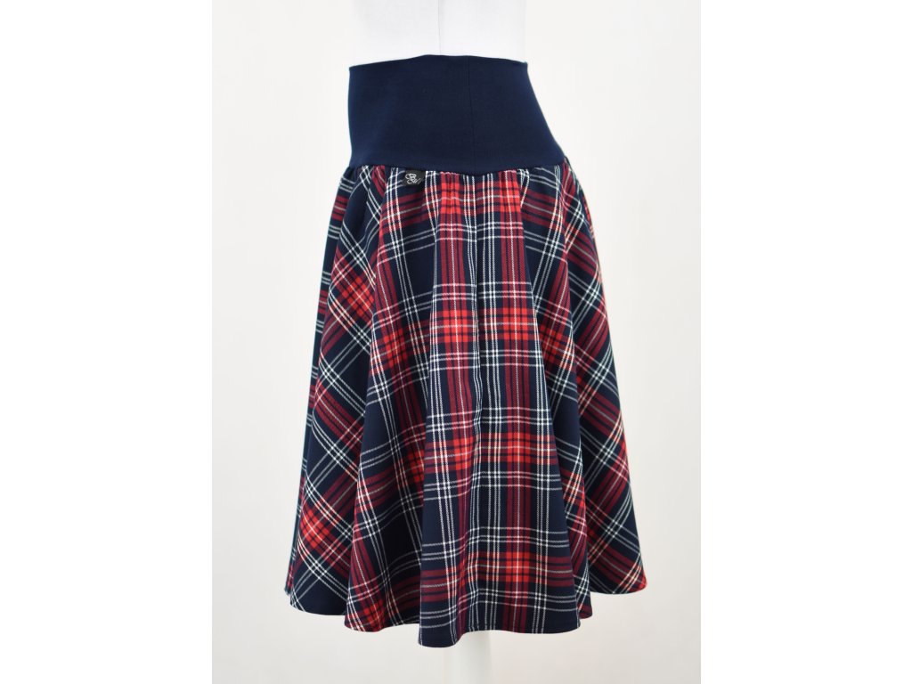 Kolová sukně - náplet - modročervená kostka
