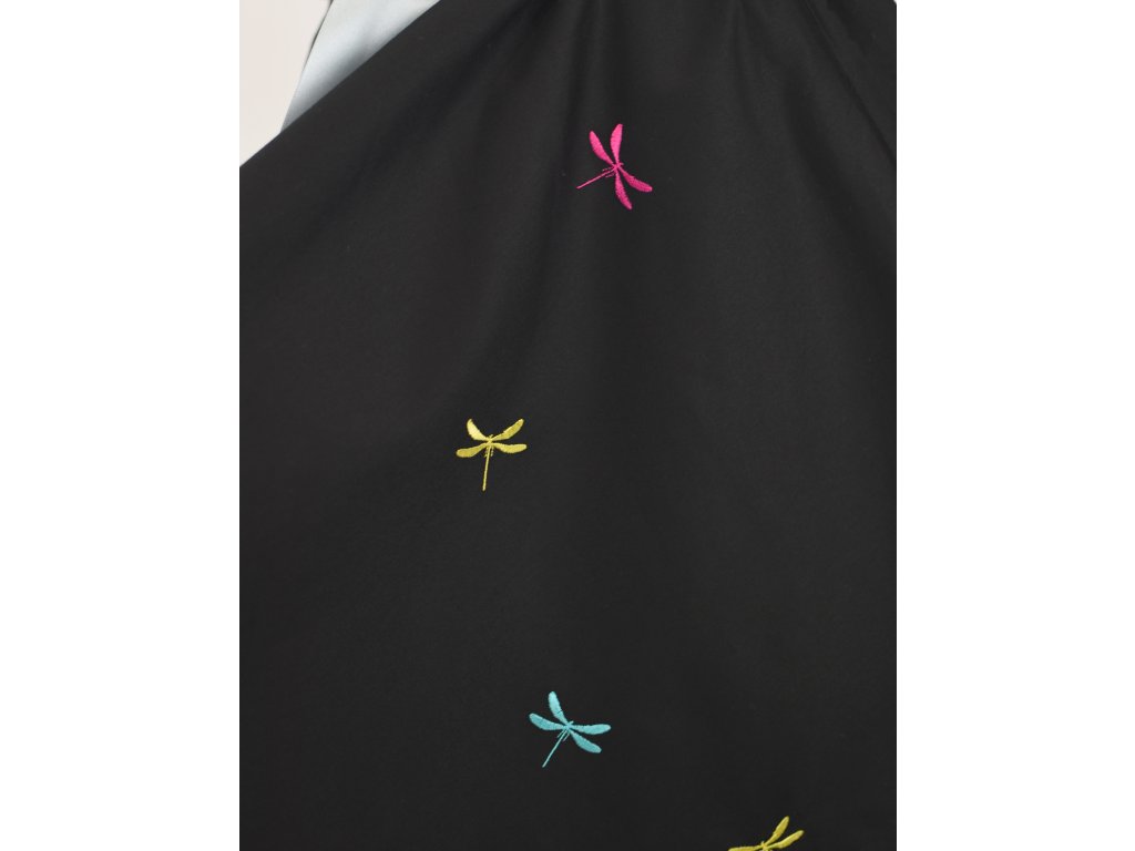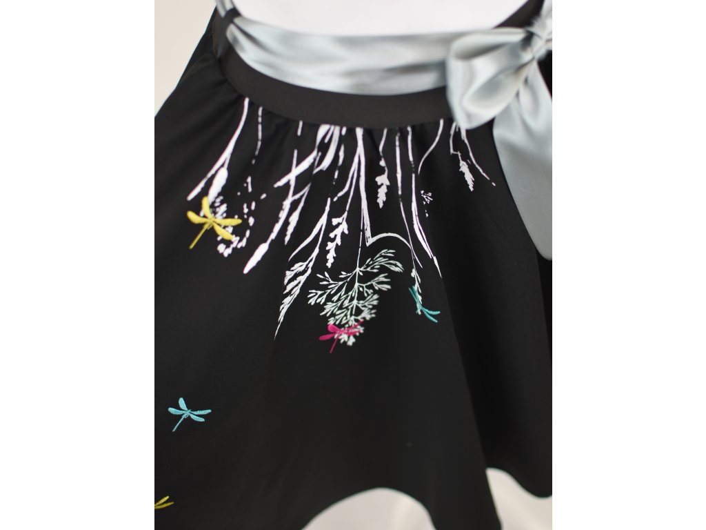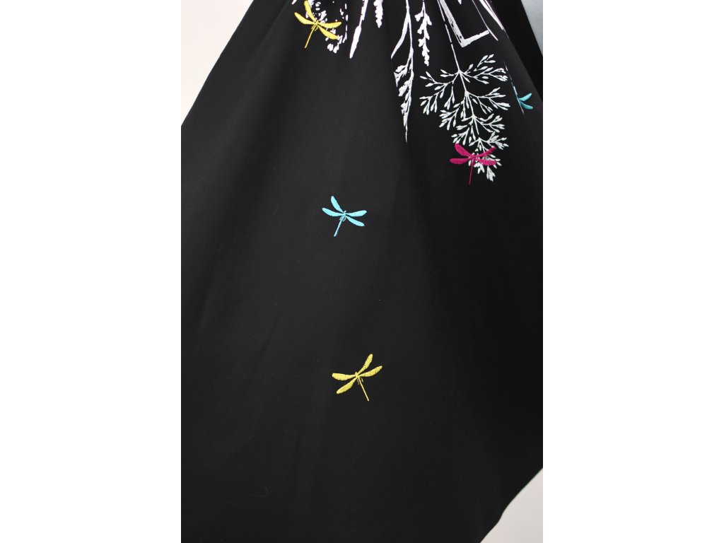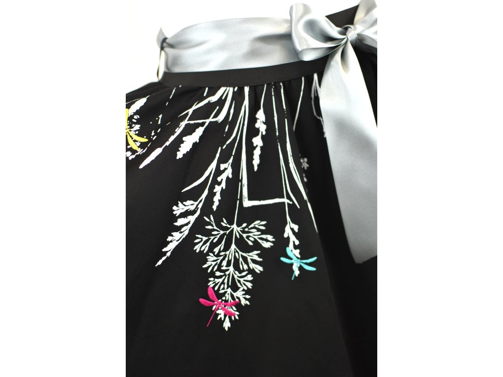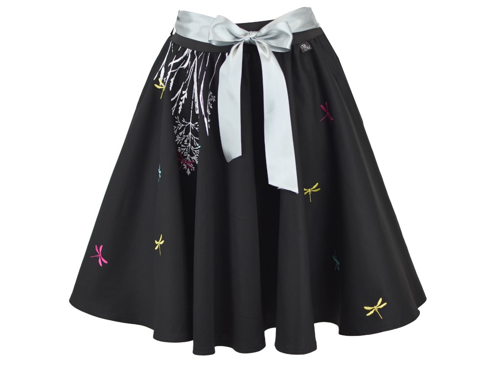 Sukně je ručně potištěna metodou sítotisku, barevné vážky jsou vyšité.