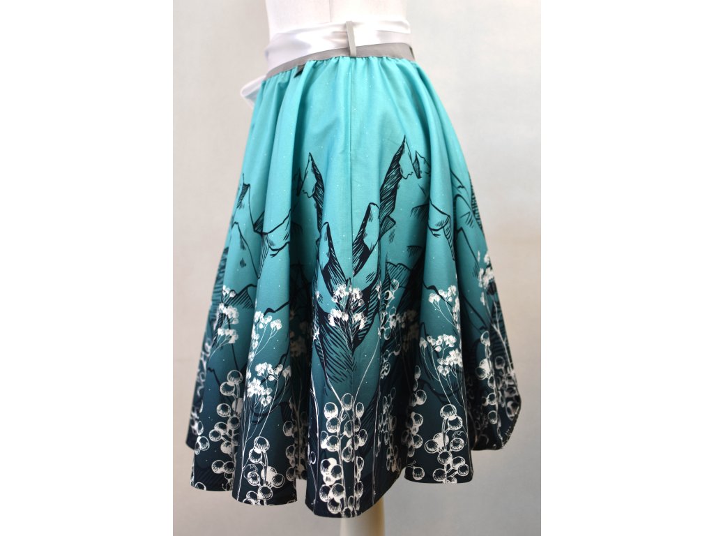 Dámská sukně s elastickou gumou do pasu, kolového střihu se skrytými kapsami v bocích a podšívkou. Sukně je hodně bohatá, objemná a krásně se točí… :)