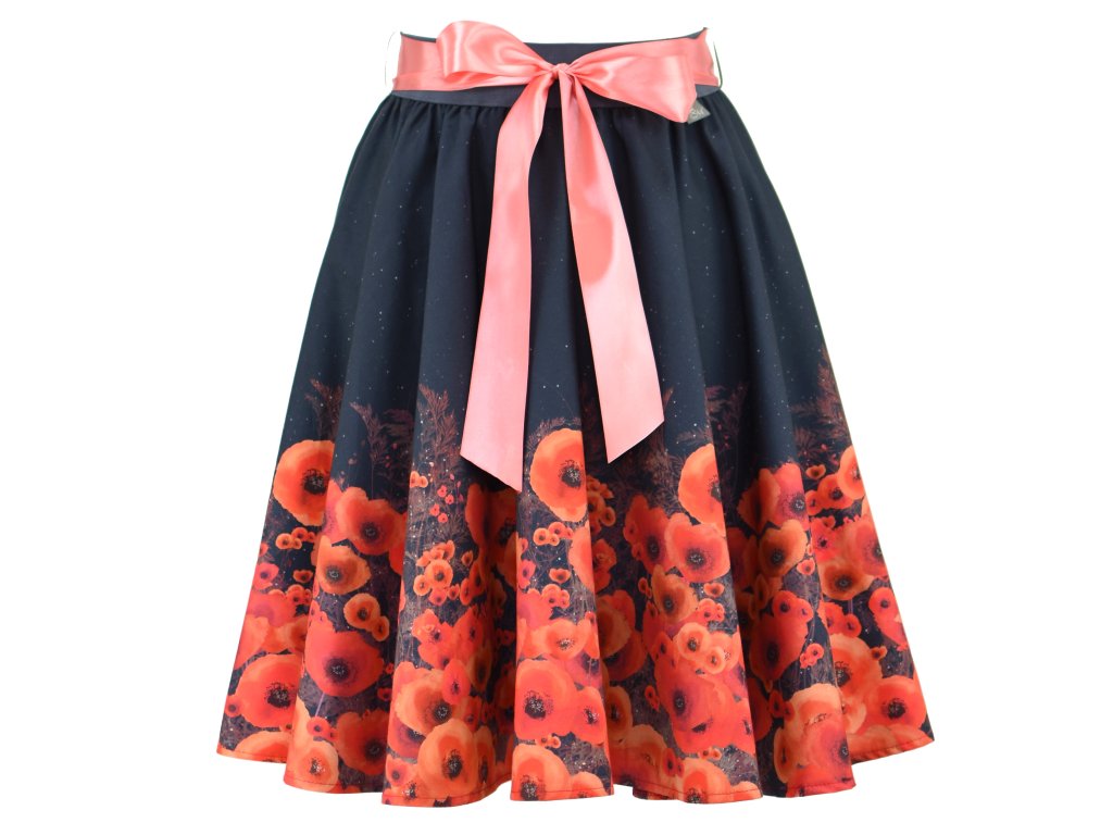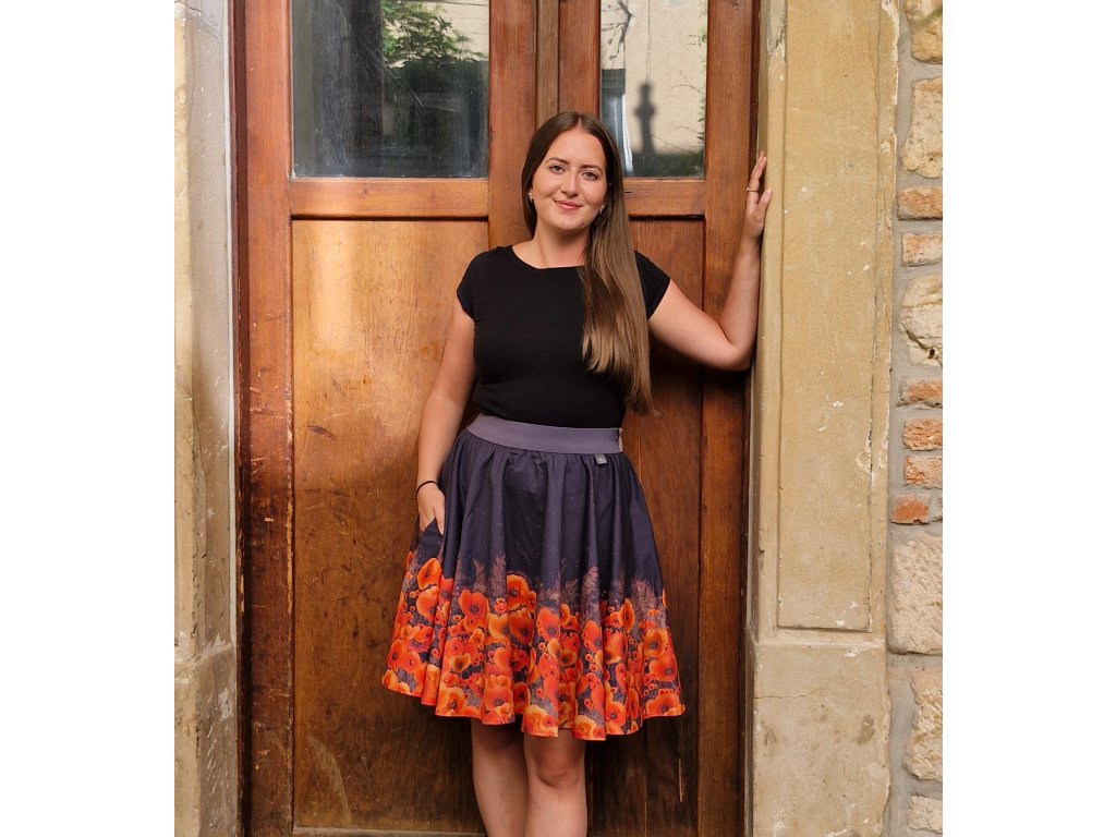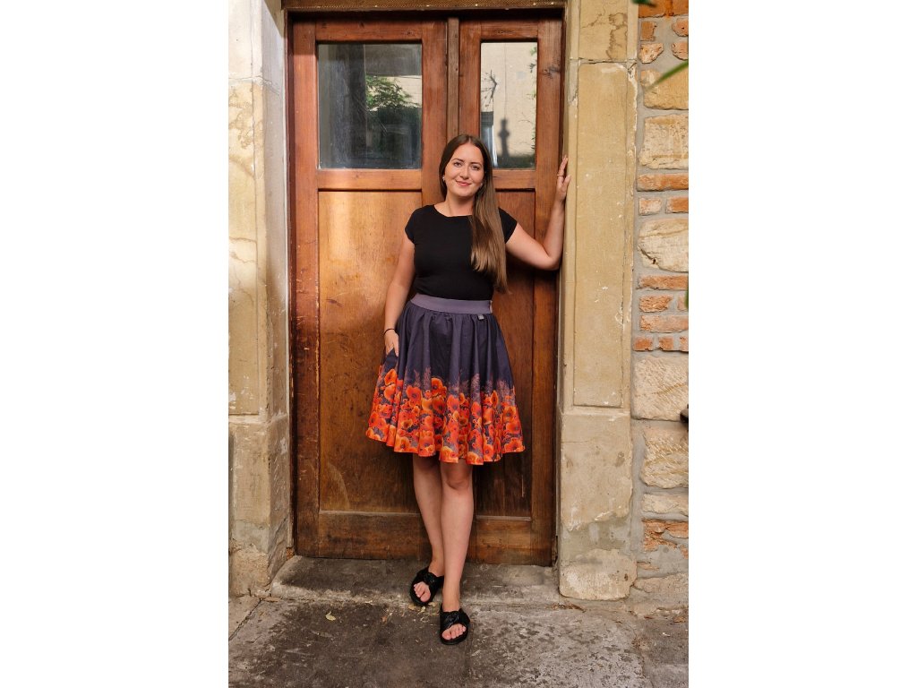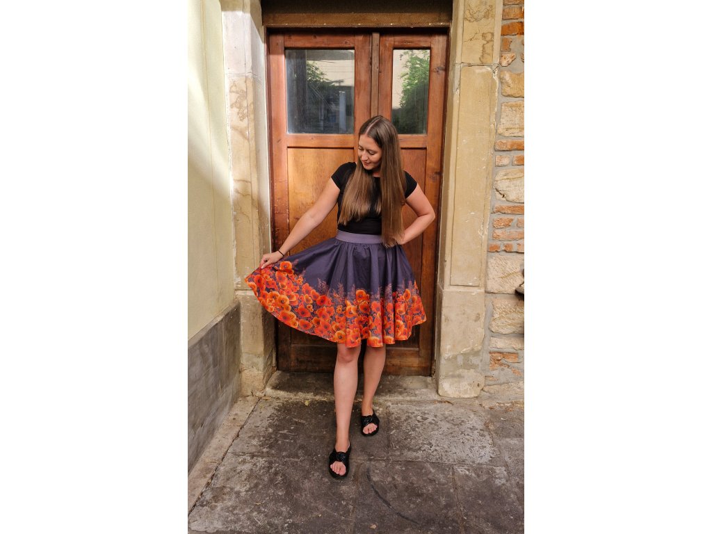 Dámská sukně s elastickou gumou do pasu, kolového střihu se skrytými kapsami v bocích a podšívkou. Sukně je hodně bohatá, objemná a krásně se točí… :)
