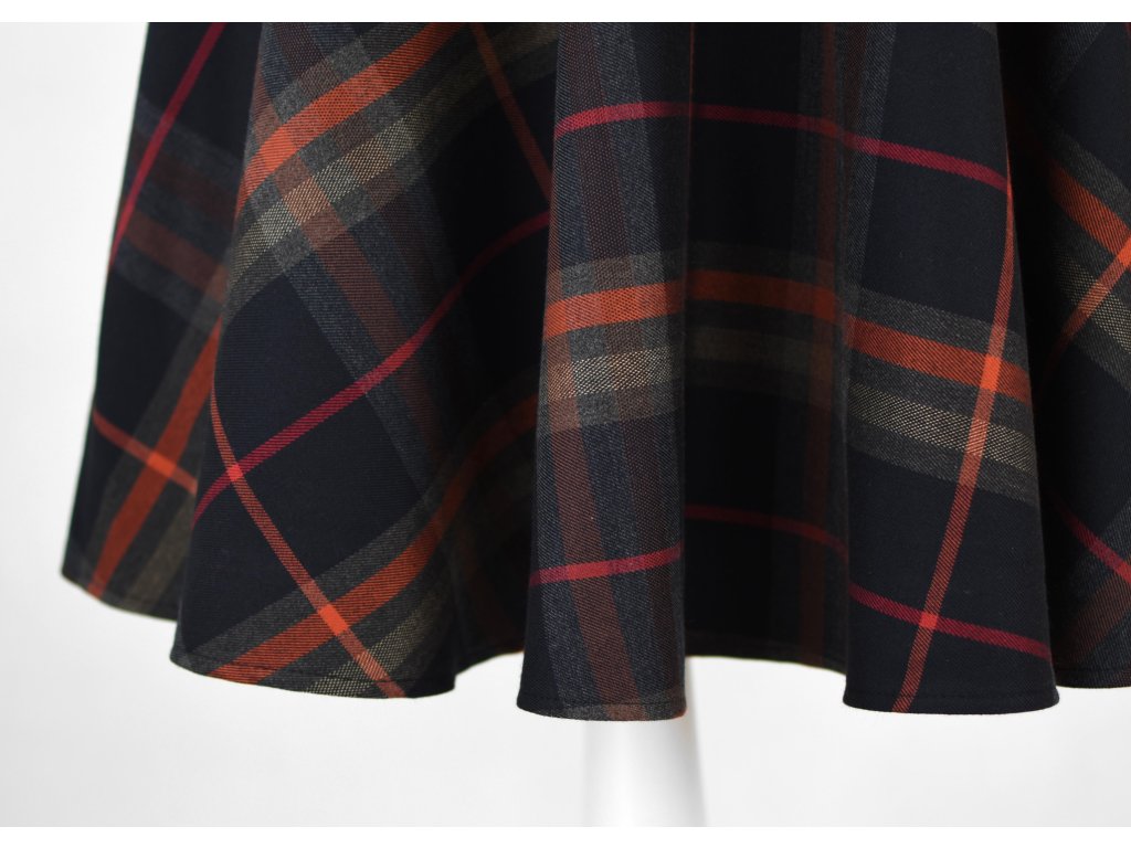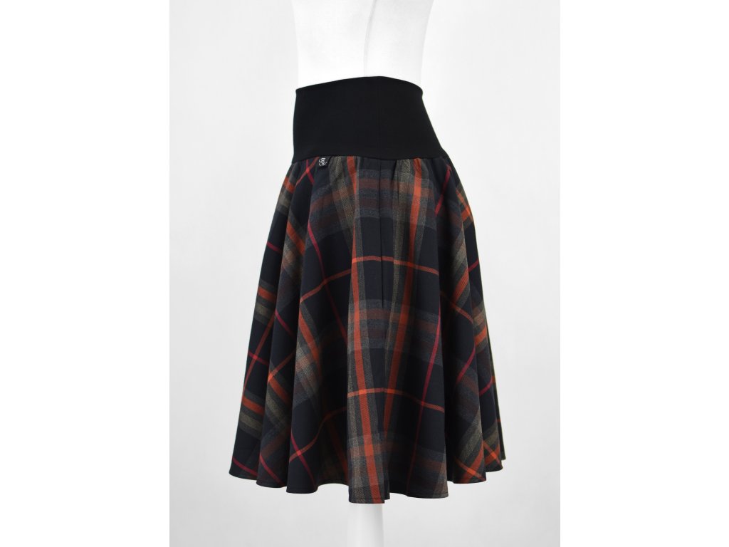 Dámská sukně s elastickým nápletem, kolového střihu se skrytými kapsami v bocích a podšívkou. Z rubu elastického pasu je nechán otvor na případné vložení gumy na zpevnění či stažení pasu (vhodné pro velikost XS). Sukně je hodně bohatá, objemná a krásně se točí… :)