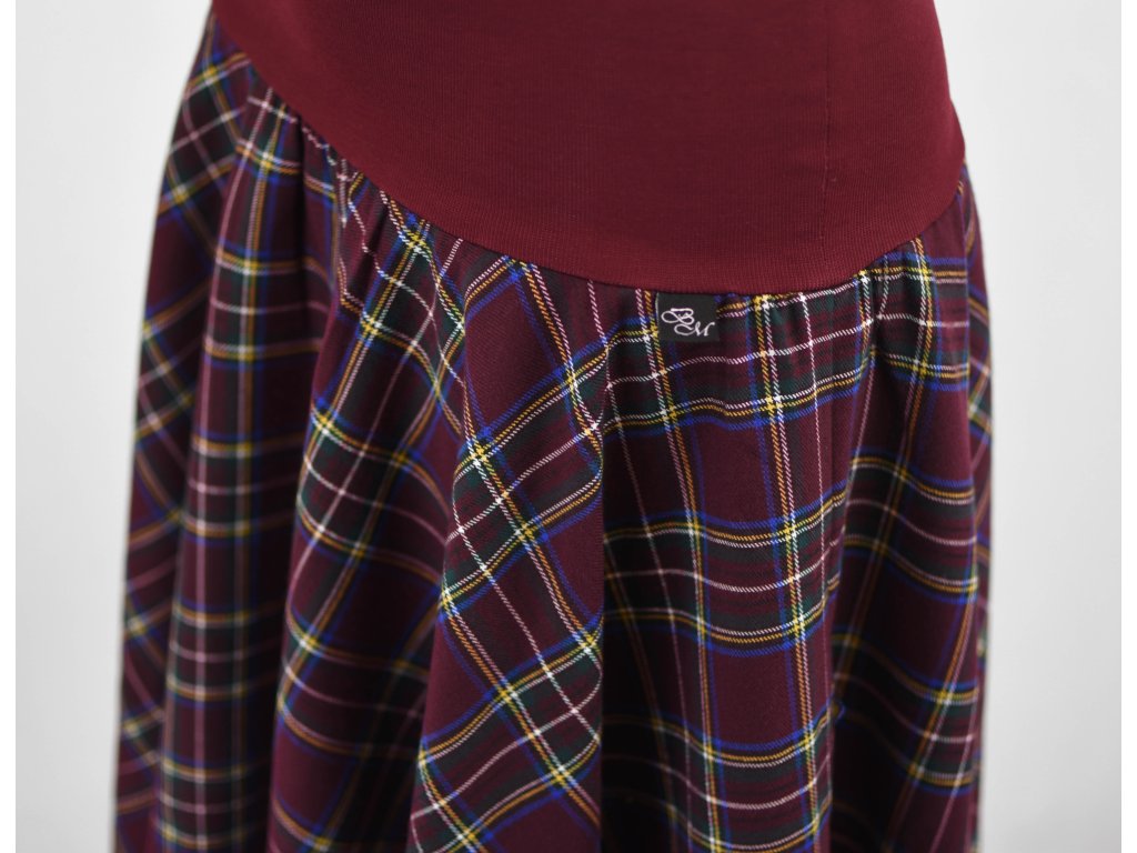 Dámská sukně s elastickým nápletem, kolového střihu se skrytými kapsami v bocích a podšívkou. Z rubu elastického pasu je nechán otvor na případné vložení gumy na zpevnění či stažení pasu (vhodné pro velikost XS). Sukně je hodně bohatá, objemná a krásně se točí… :)