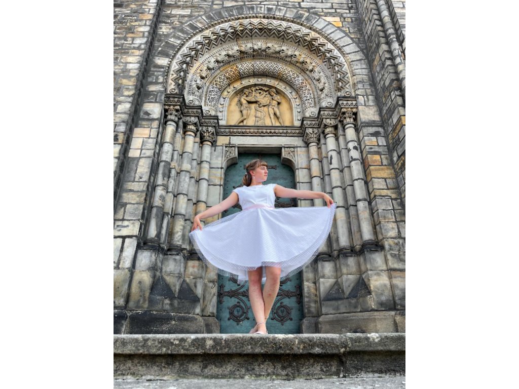 Kolové šaty - bílé s tylem