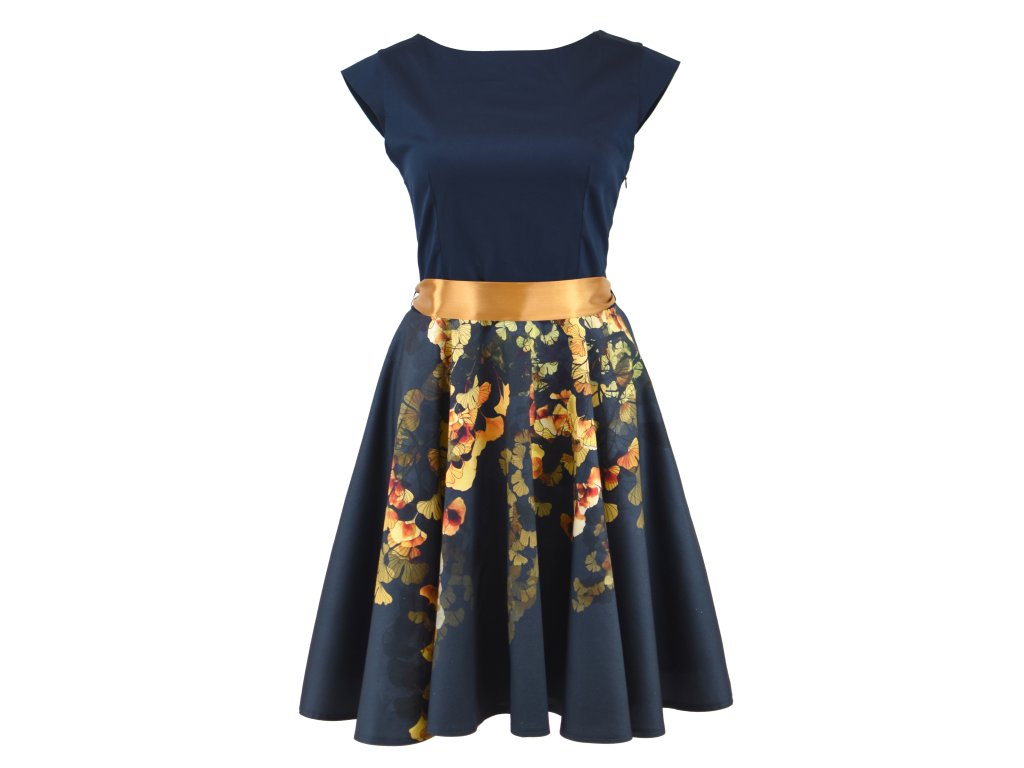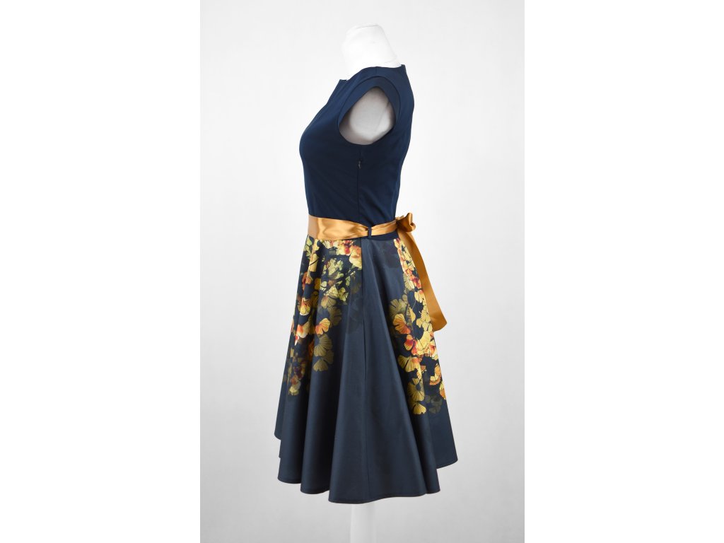 Kolové šaty - zlaté ginkgo