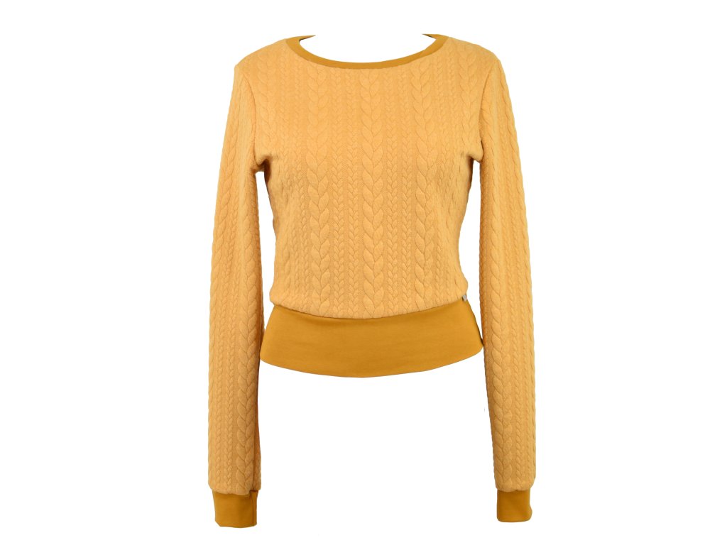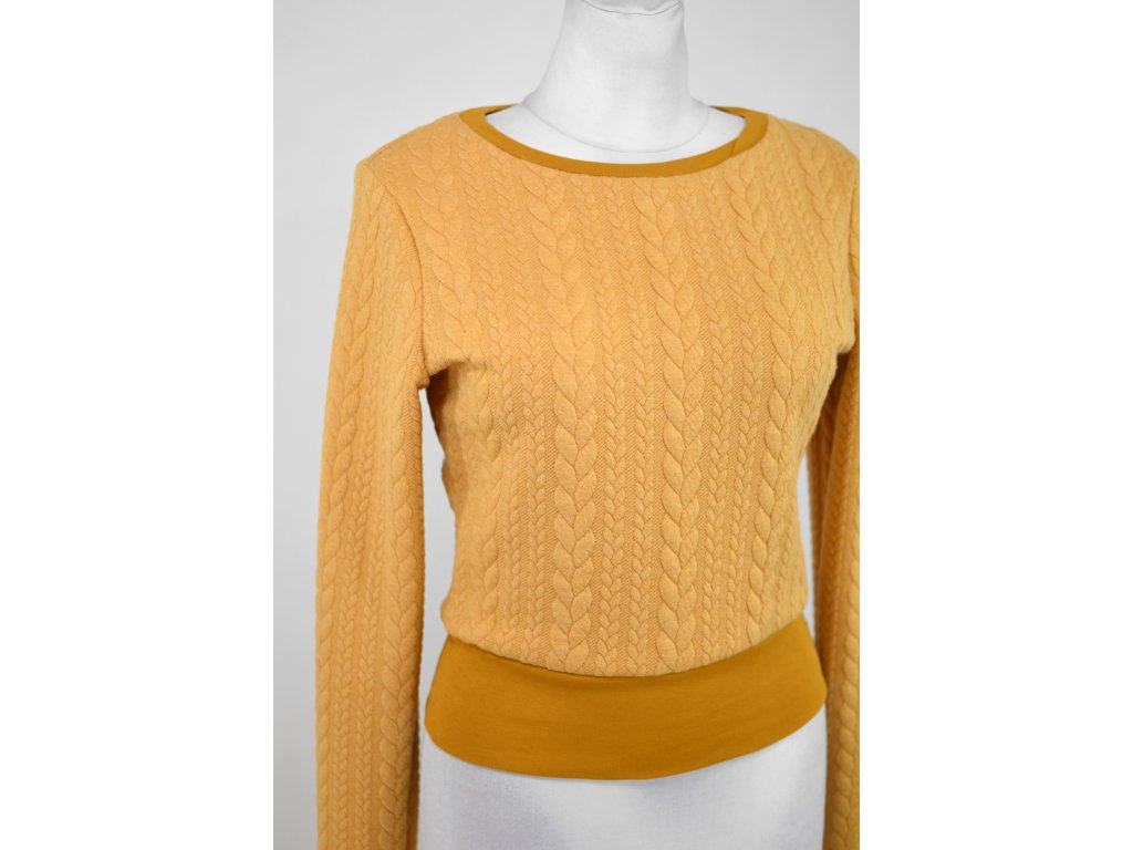 Mikina krátká - copánky - okrová