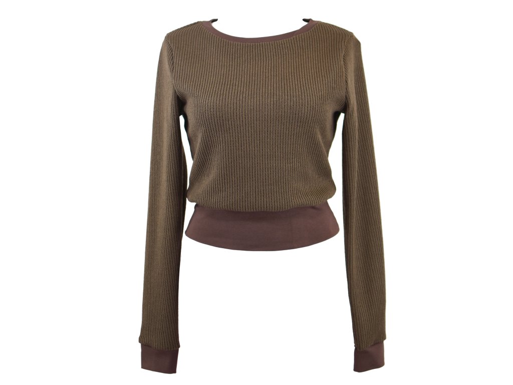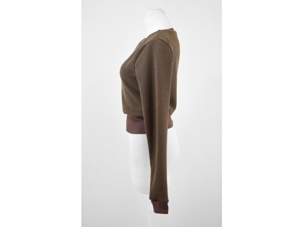 Dámská svetrová mikina zkrácené délky do pasu, vhodná ke kolovým a pasovým sukním... :) Průkrčník, dolní lem a rukávy jsou lemovány úpletem.