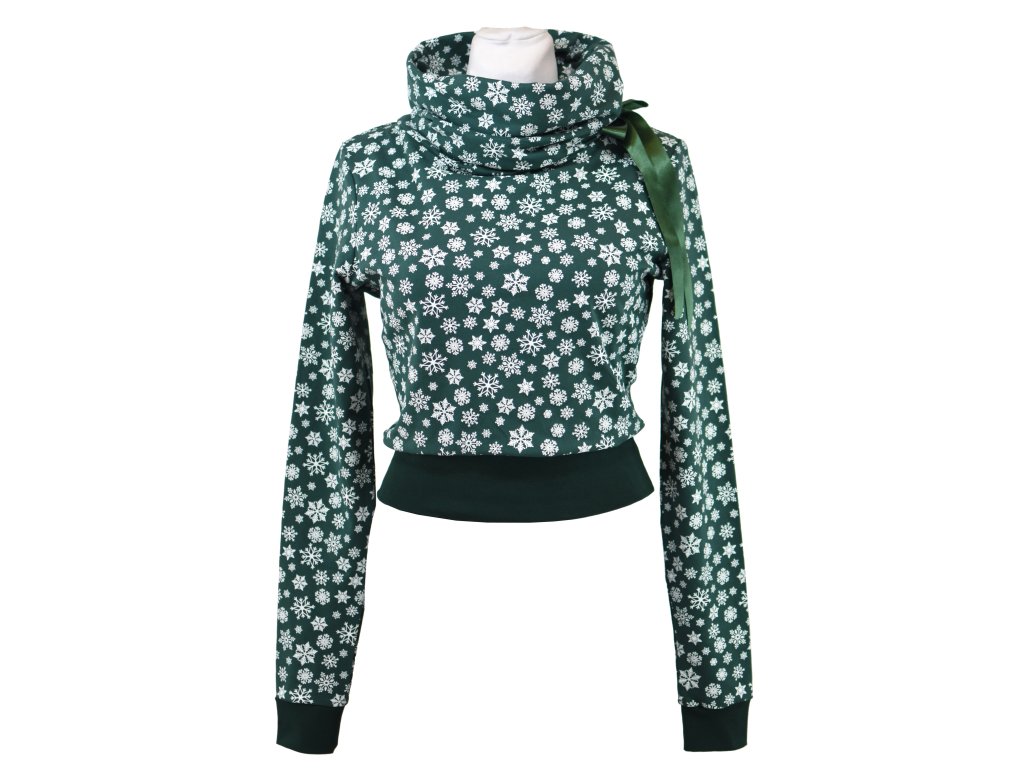 Dámská mikina zkrácené délky do pasu s límcem, vhodná ke kolovým a pasovým sukním... :) Vhodná ke kolovým a pasovým sukním. V dolním kraji na stažení a ozdobu stužka.
