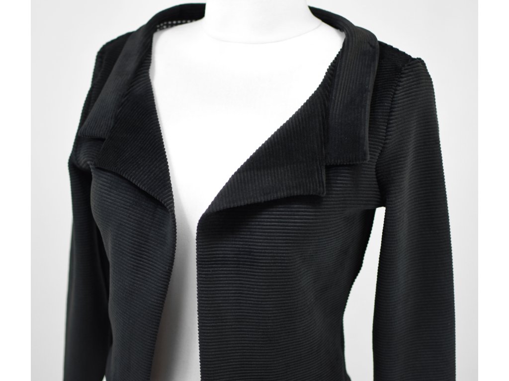 Elegantní i volnočasové krátké sáčko otevřeného střihu bez zapínání, s dlouhými rukávy. Zadní díl je lehce prodloužený tvarovaný do oblouku. Vhodné ke kolovým a pasovým sukním. Dobře se kombinuje i s dalšími druhy oblečení, třeba se společenskými šaty. Ozdobná etiketa našitá na zadním boku nesmí přijít do sušičky.