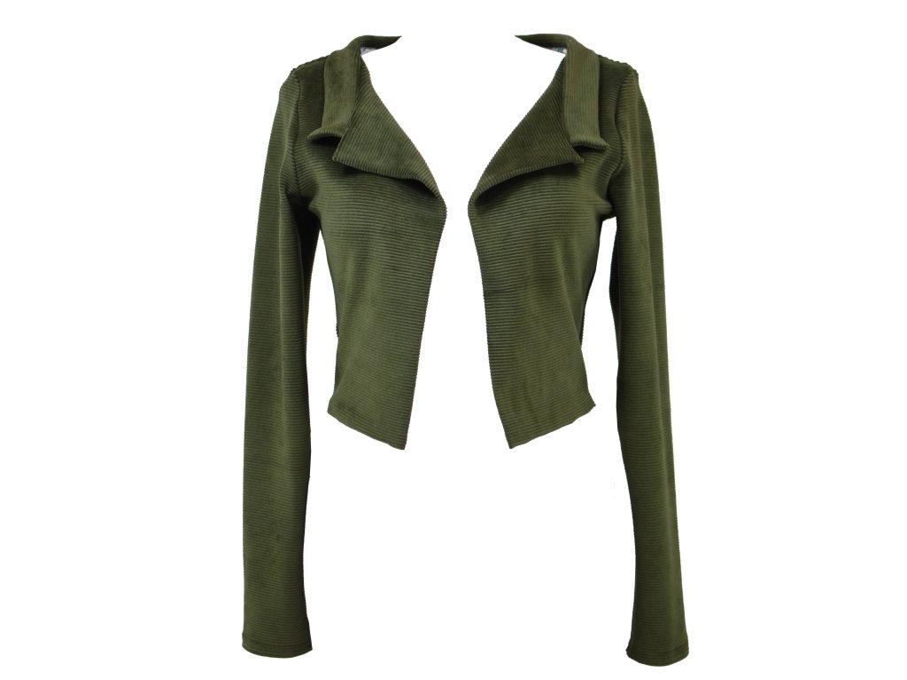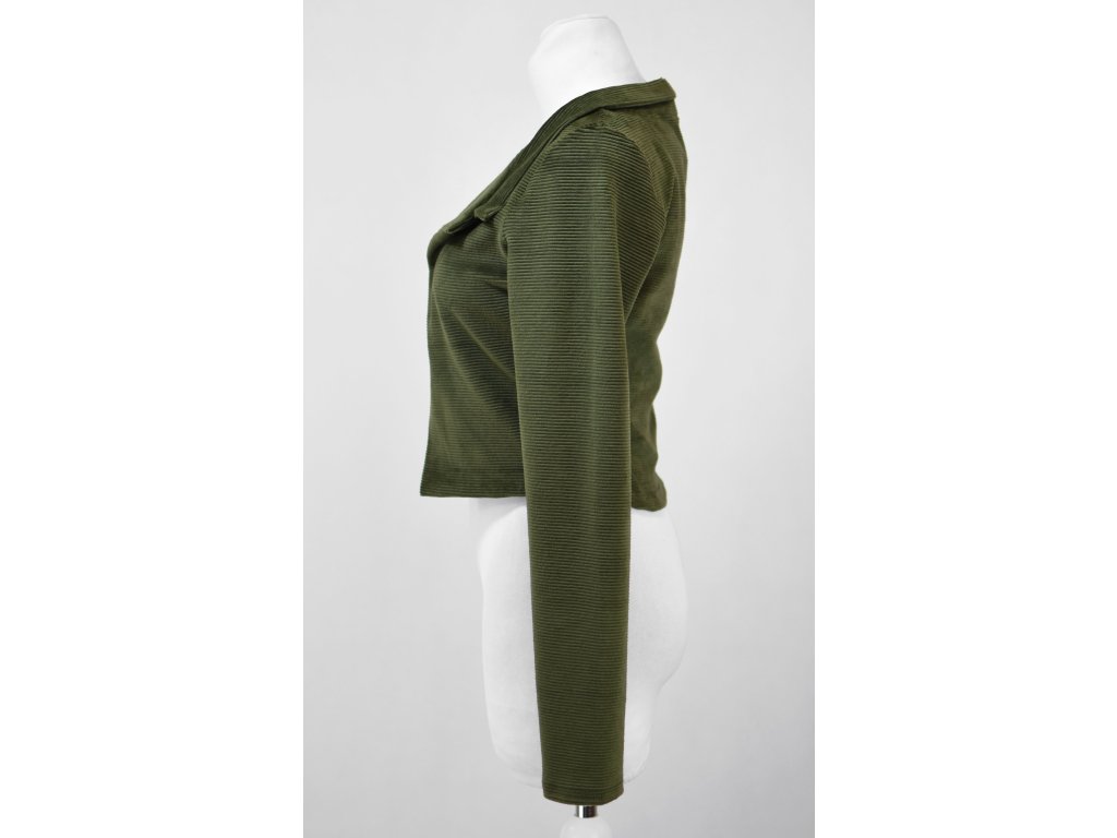 Elegantní i volnočasové krátké sáčko otevřeného střihu bez zapínání, s dlouhými rukávy. Zadní díl je lehce prodloužený tvarovaný do oblouku. Vhodné ke kolovým a pasovým sukním. Dobře se kombinuje i s dalšími druhy oblečení, třeba se společenskými šaty. Ozdobná etiketa našitá na zadním boku nesmí přijít do sušičky.