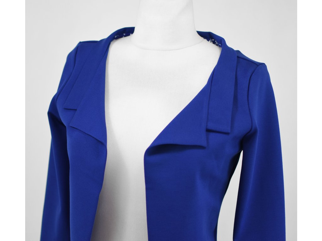 Elegantní i volnočasové krátké sáčko otevřeného střihu bez zapínání, s dlouhými rukávy. Zadní díl je lehce prodloužený tvarovaný do oblouku. Vhodné ke kolovým a pasovým sukním. Dobře se kombinuje i s dalšími druhy oblečení, třeba se společenskými šaty. Ozdobná etiketa našitá na zadním boku nesmí přijít do sušičky.