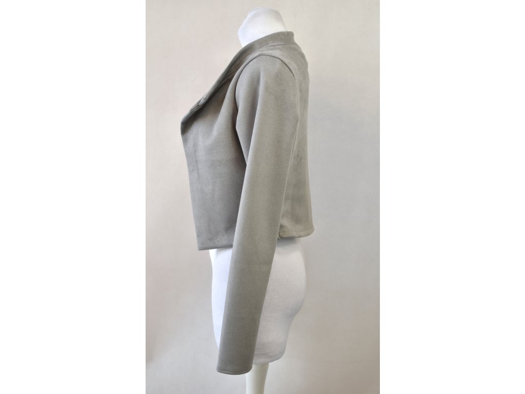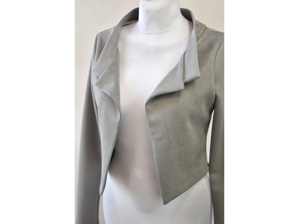 Elegantní i volnočasové krátké sáčko otevřeného střihu bez zapínání, s dlouhými rukávy. Zadní díl je lehce prodloužený tvarovaný do oblouku. Vhodné ke kolovým a pasovým sukním. Dobře se kombinuje i s dalšími druhy oblečení, třeba se společenskými šaty. Ozdobná etiketa našitá na zadním boku nesmí přijít do sušičky.