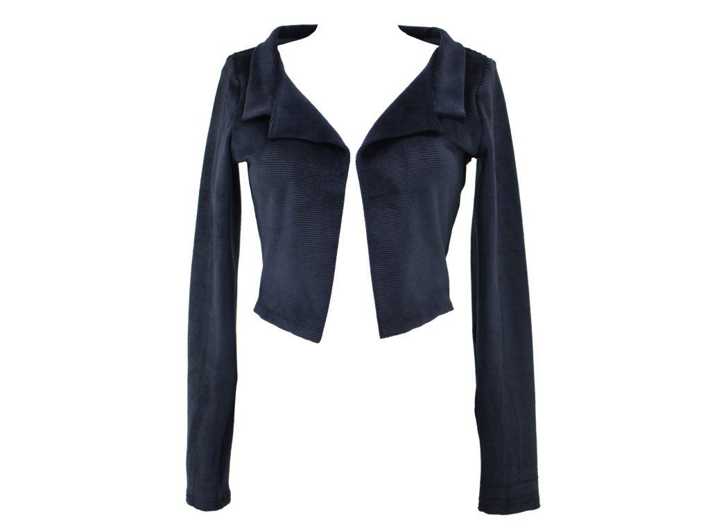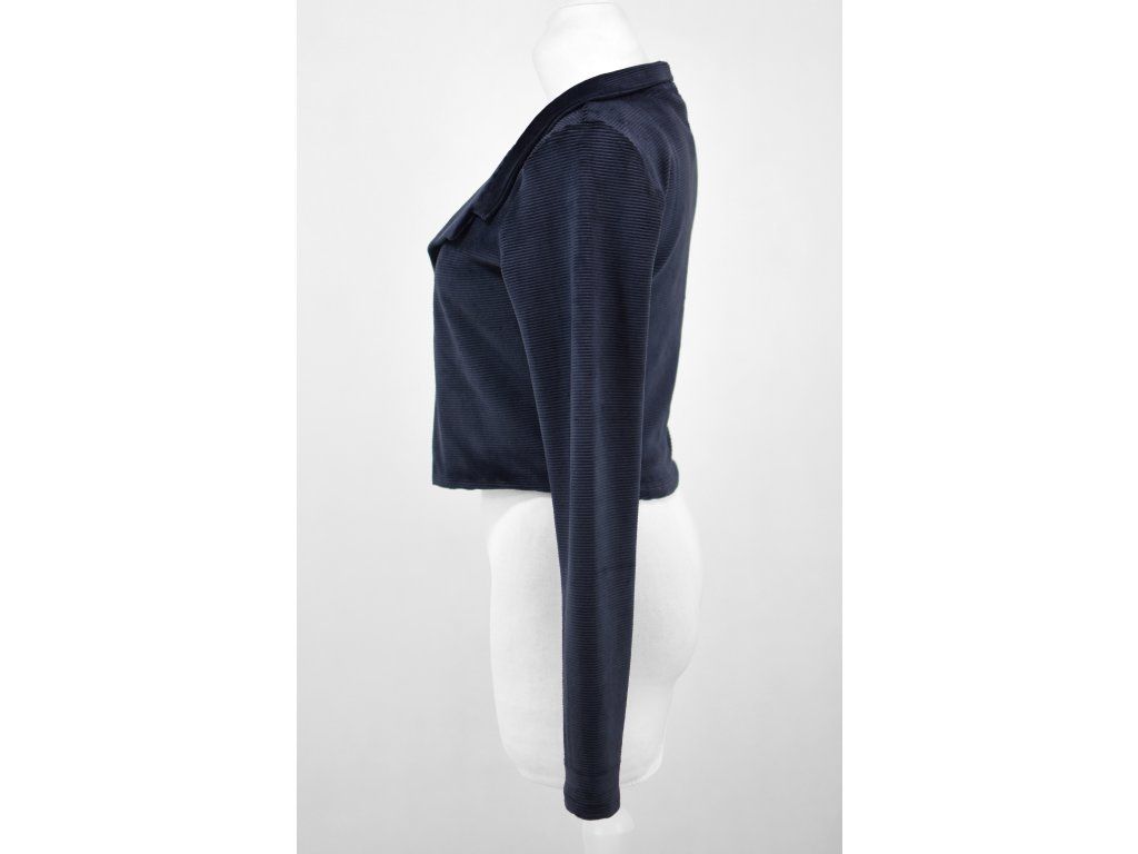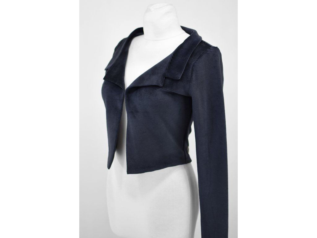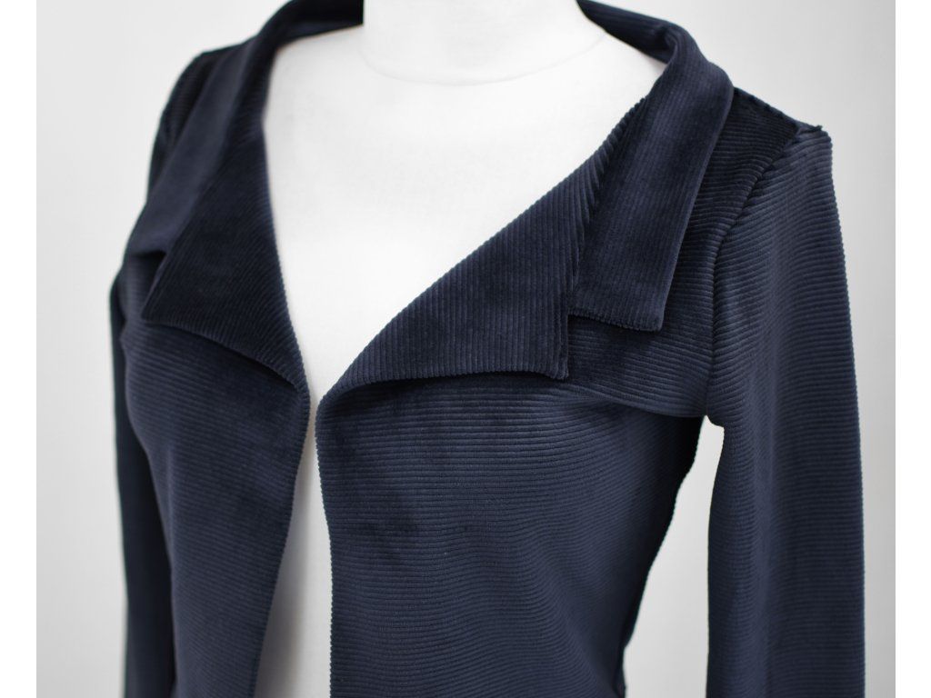 Elegantní i volnočasové krátké sáčko otevřeného střihu bez zapínání, s dlouhými rukávy. Zadní díl je lehce prodloužený tvarovaný do oblouku. Vhodné ke kolovým a pasovým sukním. Dobře se kombinuje i s dalšími druhy oblečení, třeba se společenskými šaty. Ozdobná etiketa našitá na zadním boku nesmí přijít do sušičky.