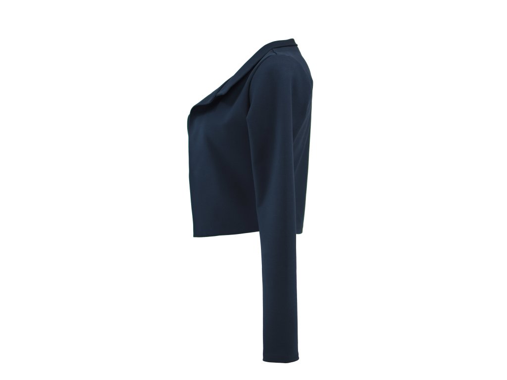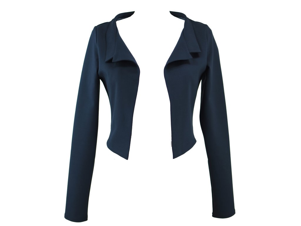 Elegantní i volnočasové krátké sáčko otevřeného střihu bez zapínání, s dlouhými rukávy. Zadní díl je lehce prodloužený tvarovaný do oblouku. Vhodné ke kolovým a pasovým sukním. Dobře se kombinuje i s dalšími druhy oblečení, třeba se společenskými šaty. Ozdobná etiketa našitá na zadním boku nesmí přijít do sušičky.
