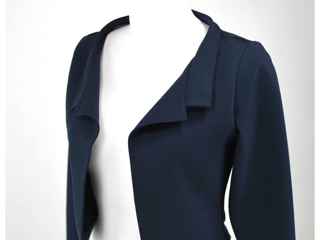 Elegantní i volnočasové krátké sáčko otevřeného střihu bez zapínání, s dlouhými rukávy. Zadní díl je lehce prodloužený tvarovaný do oblouku. Vhodné ke kolovým a pasovým sukním. Dobře se kombinuje i s dalšími druhy oblečení, třeba se společenskými šaty. Ozdobná etiketa našitá na zadním boku nesmí přijít do sušičky.