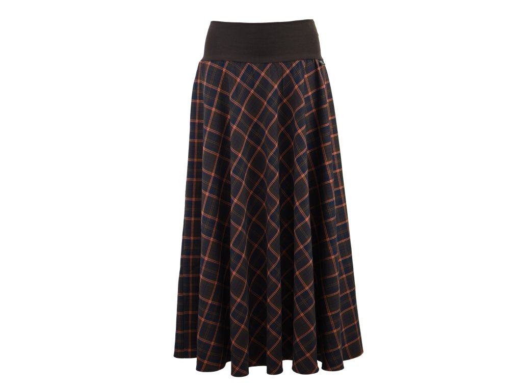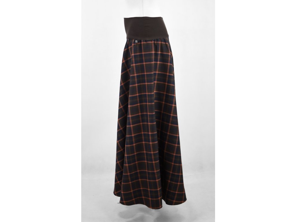 Maxi půlkolová sukně - hnědá kostka