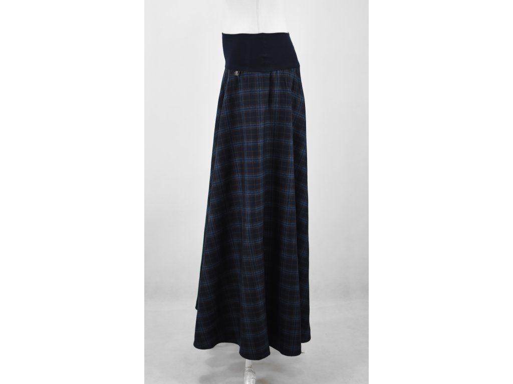 Dlouhá dámská sukně půlkolového střihu s dvojitým elastickým pasovým okrajem vhodným pro většinu velikostí. Z rubu elastického pasu je nechán otvor na případné vložení gumy na zpevnění či stažení pasu (vhodné pro velikost XS).