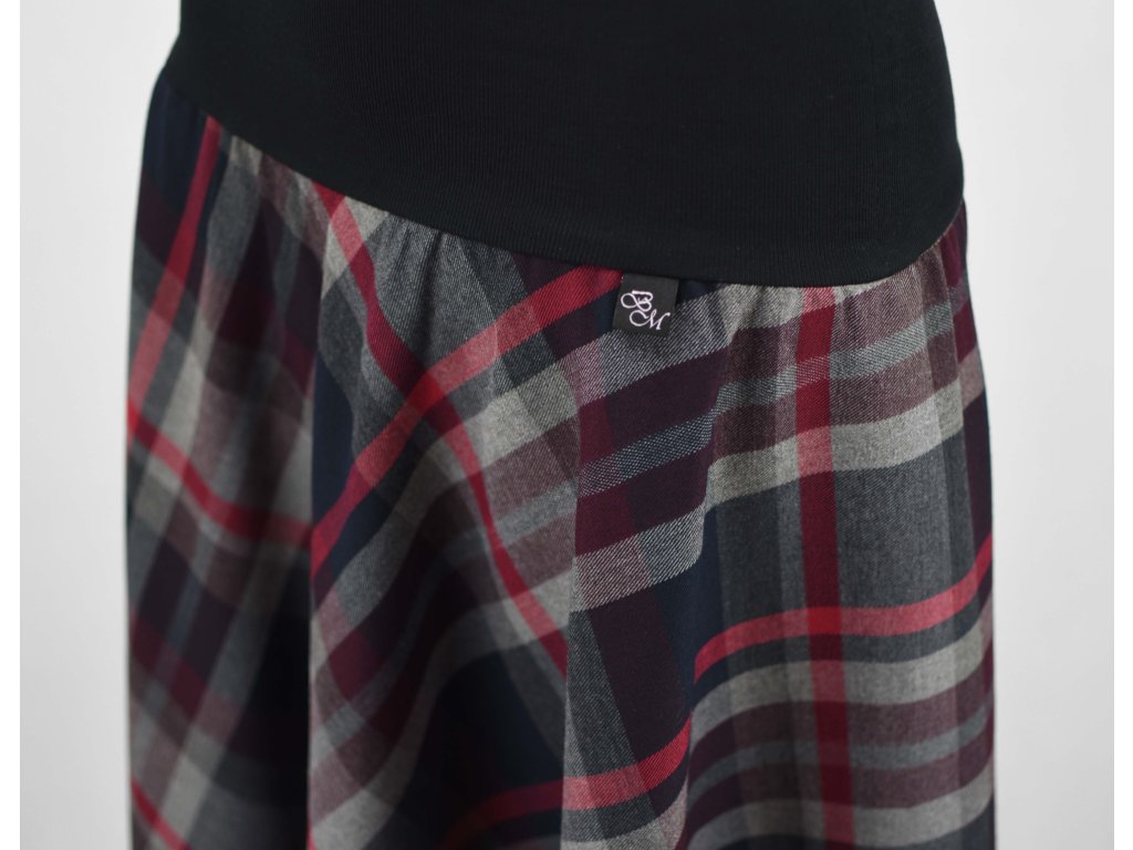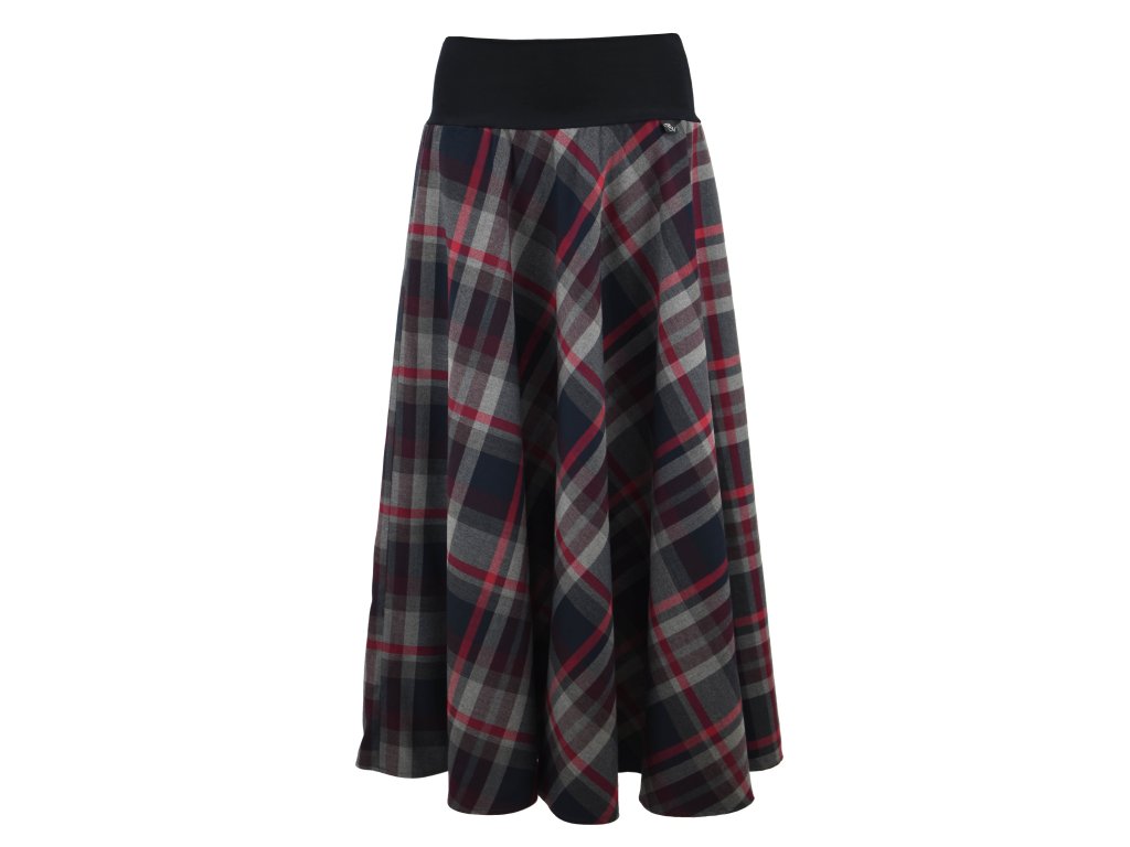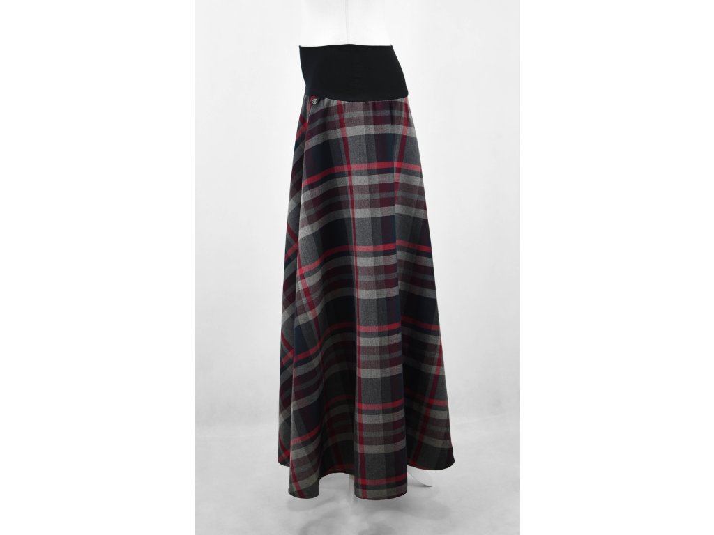 Dlouhá dámská sukně půlkolového střihu s dvojitým elastickým pasovým okrajem vhodným pro většinu velikostí. Z rubu elastického pasu je nechán otvor na případné vložení gumy na zpevnění či stažení pasu (vhodné pro velikost XS).