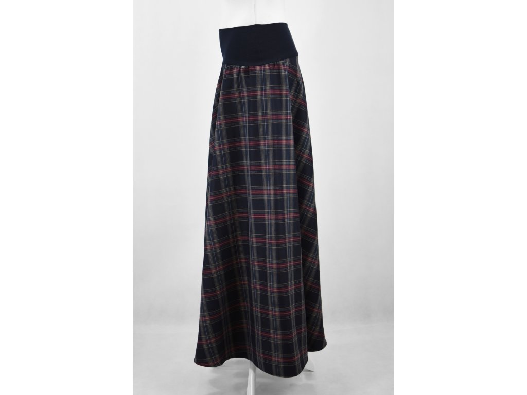 Dlouhá dámská sukně půlkolového střihu s dvojitým elastickým pasovým okrajem vhodným pro většinu velikostí. Z rubu elastického pasu je nechán otvor na případné vložení gumy na zpevnění či stažení pasu (vhodné pro velikost XS).