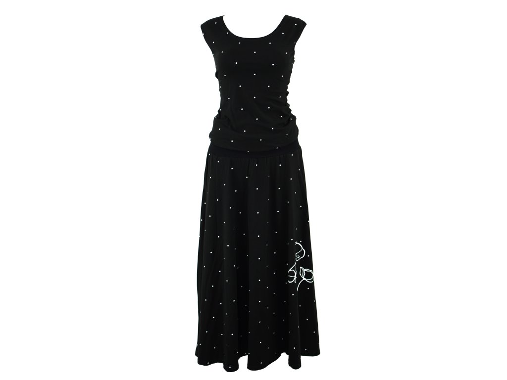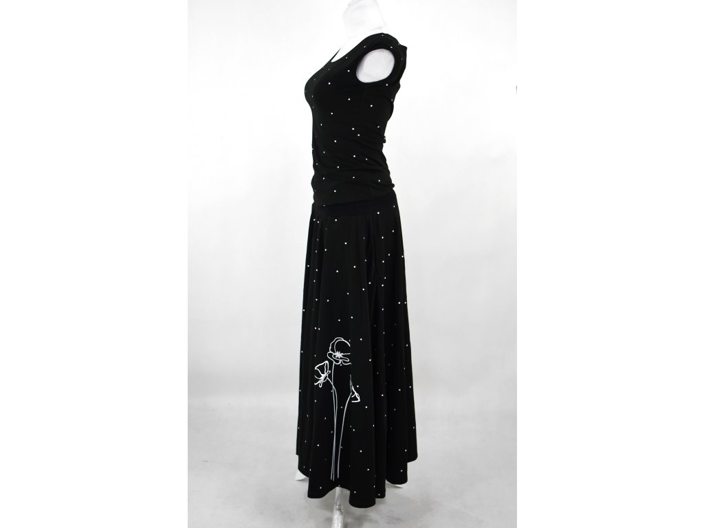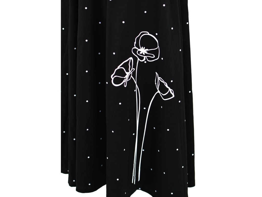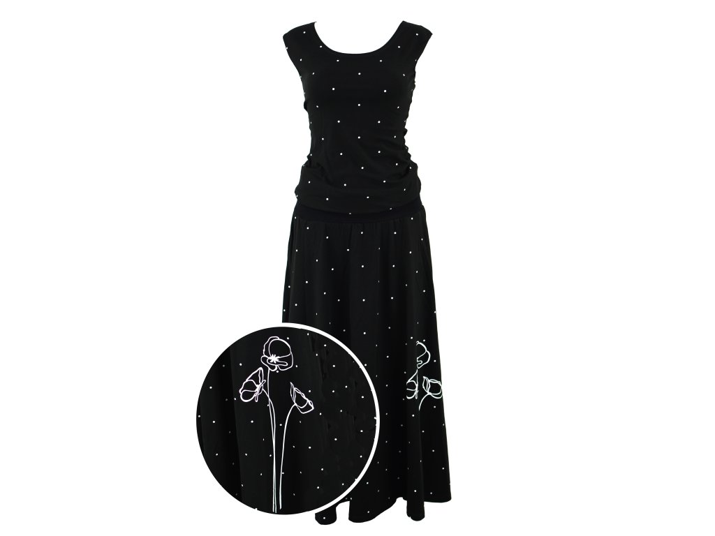 Maxi půlkolové šaty - černé s puntíky a máky
