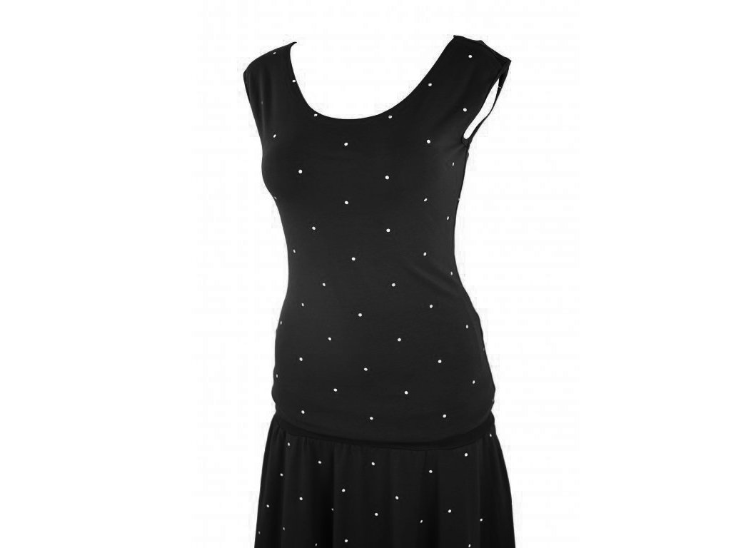 Maxi půlkolové šaty - černé s puntíky