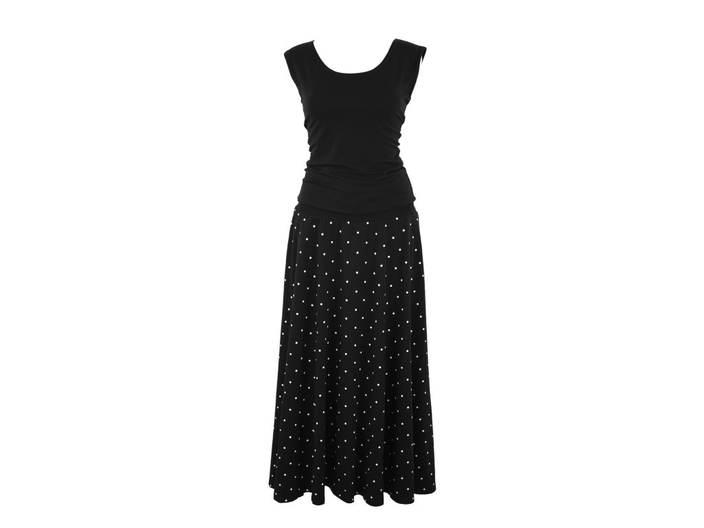 Maxi půlkolové šaty - černé s puntíky na sukni