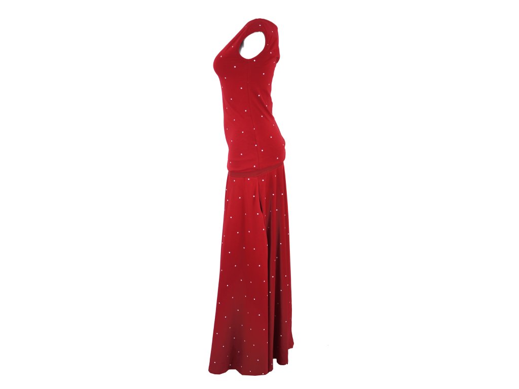 Maxi sukně je půlkolového střihu se skrytými kapsami v bocích.