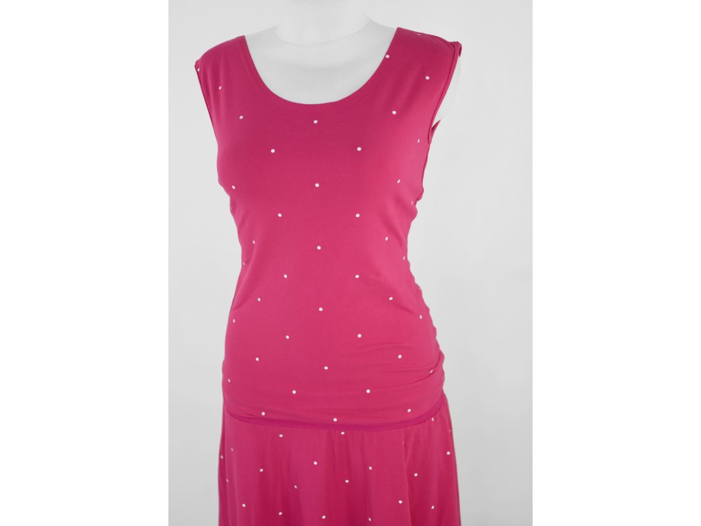 Vrchní díl vychází z našeho trička s kratšími rukávy s podkasáním - není tak obepnuté přes pas a bříško.