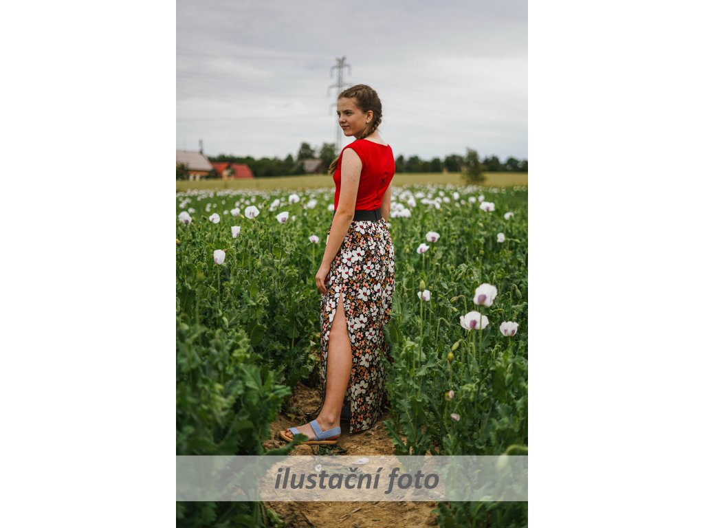 Maxi dlouhá sukně s elastickou gumou v pase. Z lehké vzdušné látky, bez podšívky a bez kapes, na levé straně rozparek pro pohodlnější chůzi... :)