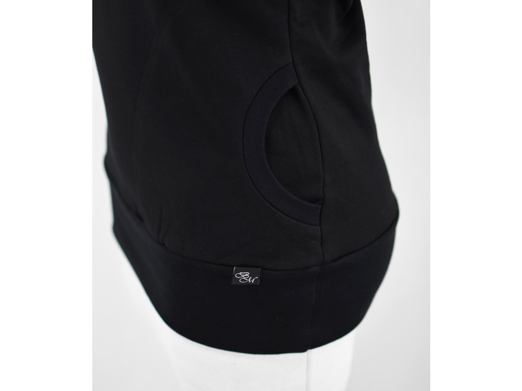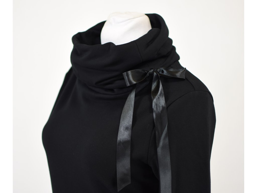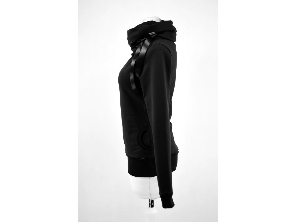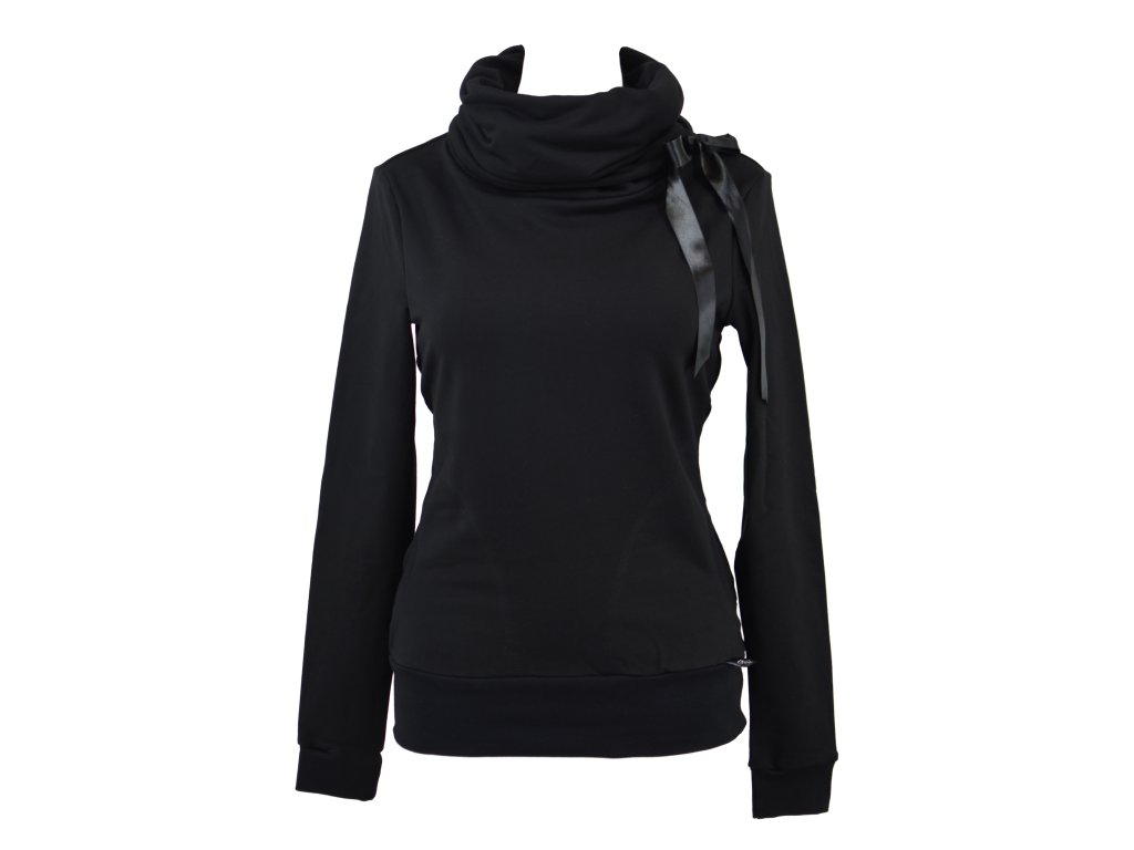 Dámská mikina prodloužené délky a s prodlouženými rukávy. Rovnější v pase, kapsy v bocích jsou lemované úpletem a taktéž rukávy. Obří límec má z rubu otvor a je jím protažena stuha, kterou ho můžete stáhnout. Lze ho nosit ohrnutý.