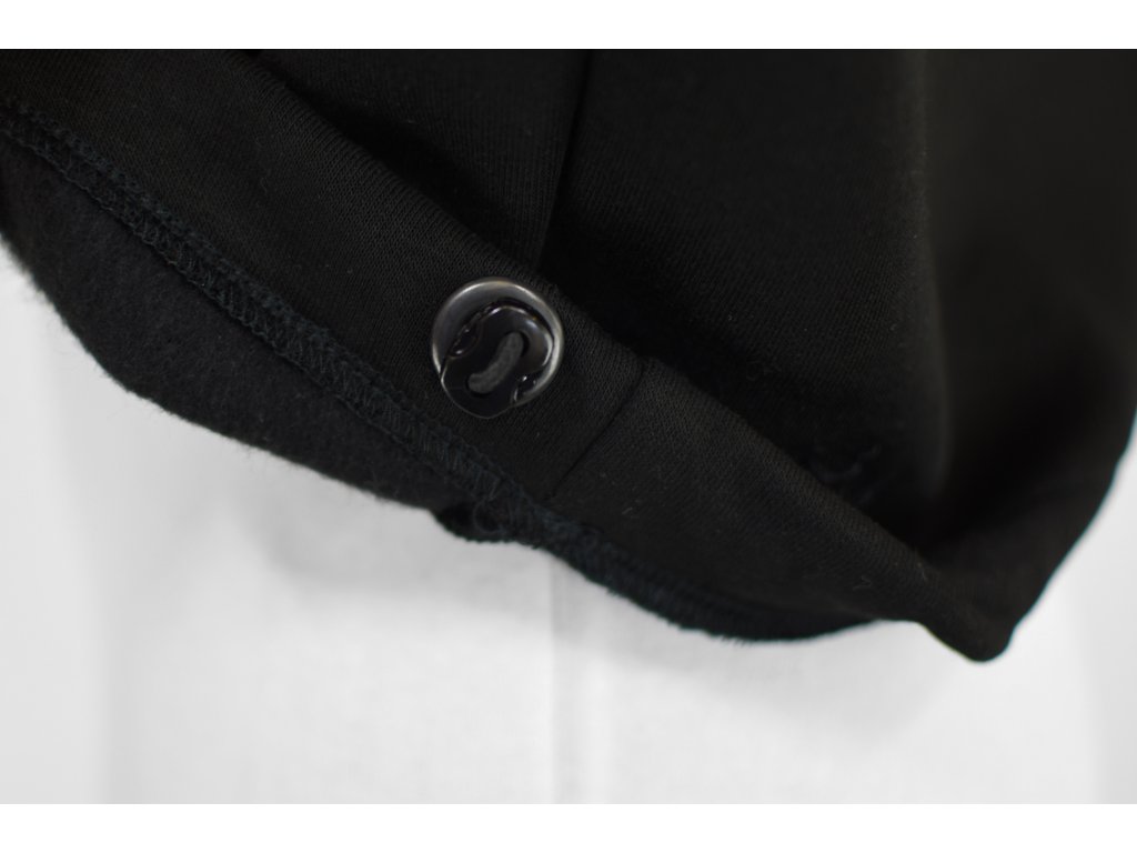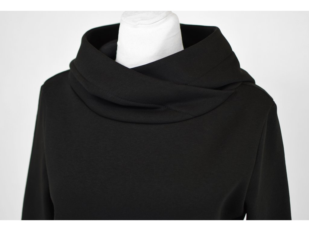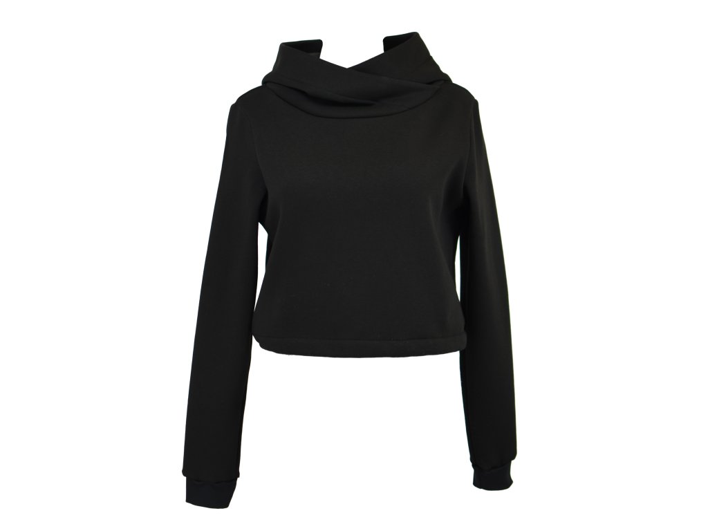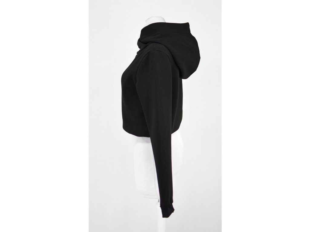 Dámská mikina volnějšího střihu a zkrácené délky do pasu. Má kapucu s překřížením u krku, rukávy jsou lemovány úpletem. V dolním okraji se dá stáhnout gumičkou na levé straně (s kovovou průchodkou zevnitř mikiny). S výšivkou loga BM na zadním dílu.